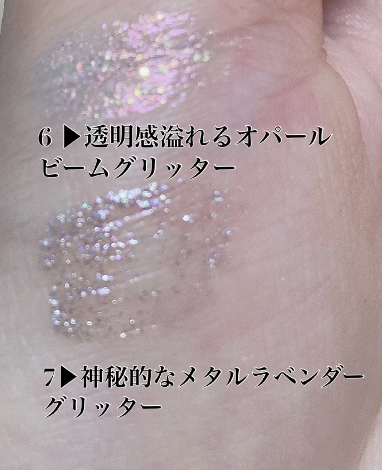 鮮やかな光を放つ神秘的なメタルラベンダーグリッター 繊細なラメで大人でも使いやすいグリッターで、イルミネーションメイクにもおすすめです! このグリッター1つで涙袋爆誕するので、ぜひチェックしてみてください!🥰
