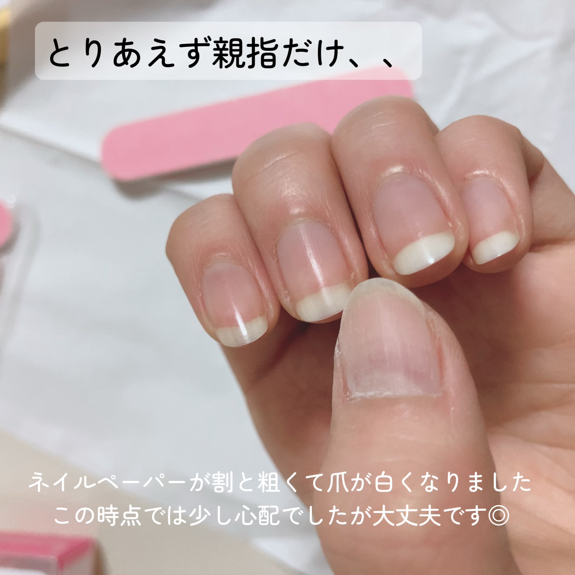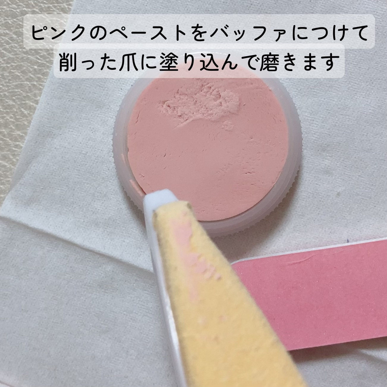 ヤスリが粗くて爪が白くなっちゃったので大丈夫かな?と心配だったのですが、説明通りにやってみたらちゃんとつるぴかな爪になりました✨✨ ピンクのペーストを適当に塗り広げて後は磨くだけです! 強めに磨くとちゃんと艶がでてきます 爪の表面がツルツルになって触り心地も良かったです 爪が潤って健康になるネイルオイルです! 私はハイポニウムに塗ってます✊🏻 私は百均のは効果がなかったのでケチらないでこっちを買うのがおすすめです!! 数えられないほどリピートしてる私のお気に入り商品です🥰