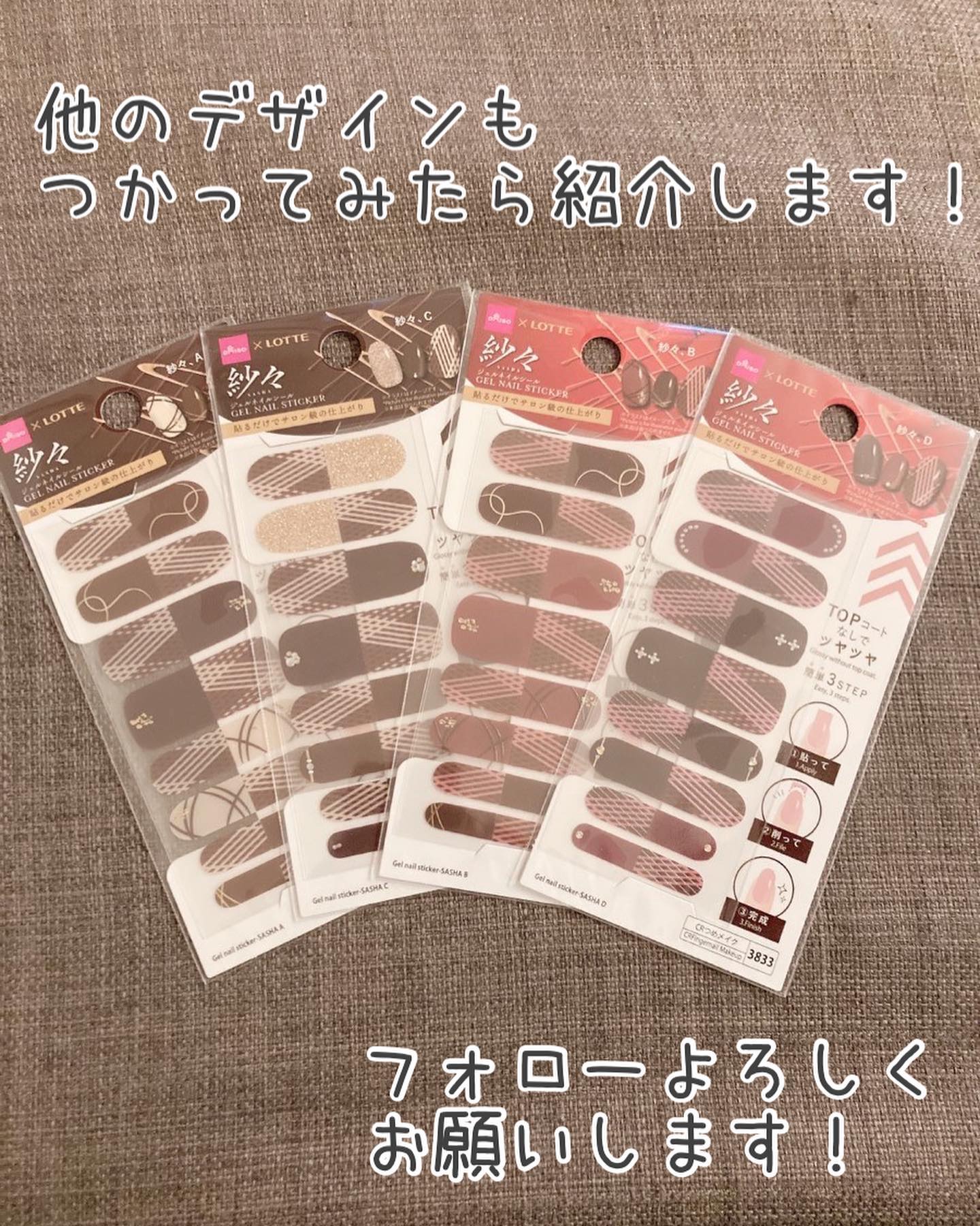 ダイソーは毎年人気の紗々ネイル! 今年はリボンのデザインがお気に入り!貼ってみるのが楽しみです✨ セリアはチョコ以外にもあって、ホワイトデーにも良さそうです! 明るくてかわいらしい雰囲気でした! ダイソーの硬化タイプのブラウン系もいい感じ! 剥がれにくいのでおすすめです✨