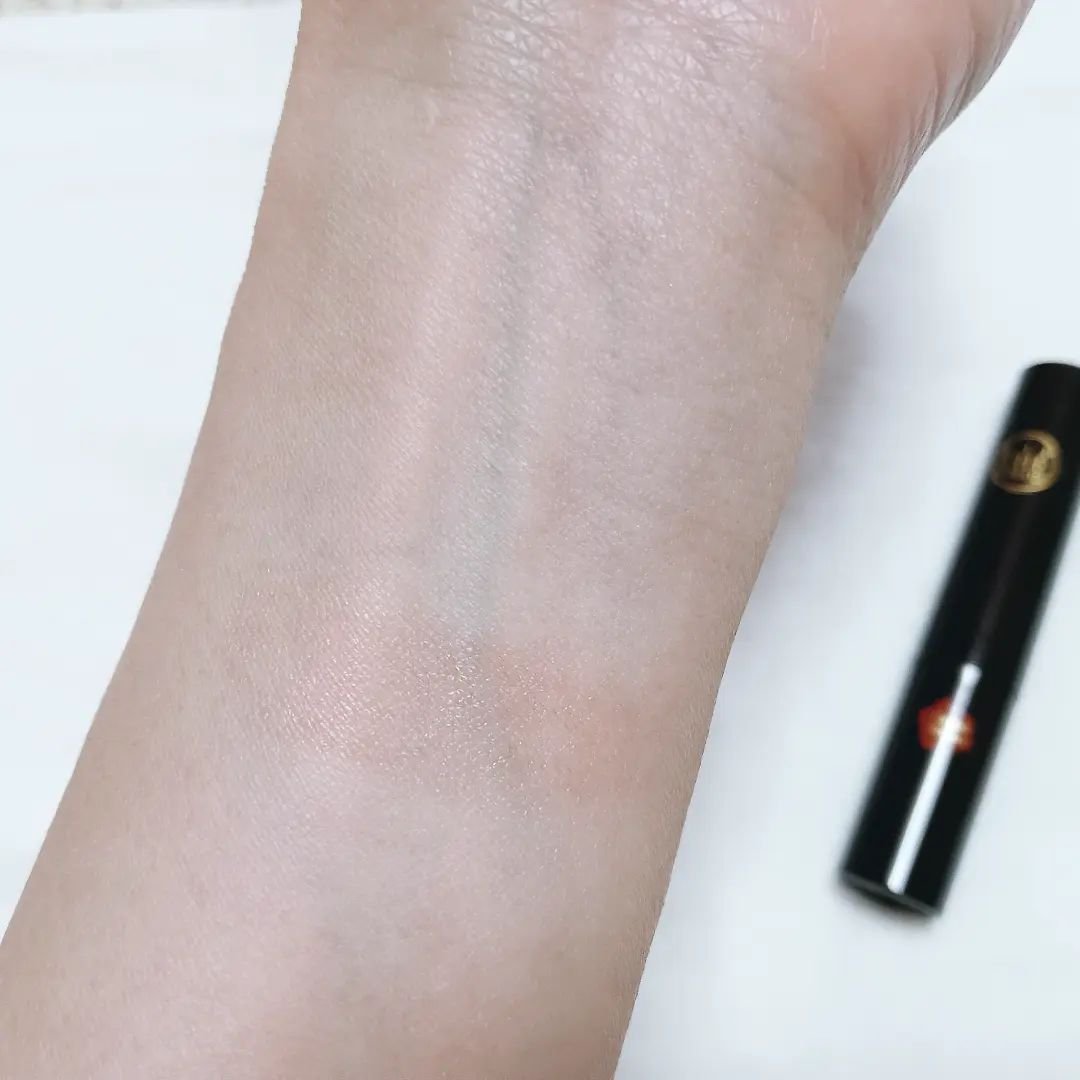 透け感があって明るめブラウンリップ でとっても使えそう✨ リップクリームなのでもちろん保湿、うるおい、つけ心地もよき💖 ティントなので腕につけティッシュオフしたら少しだけ色が残りました。