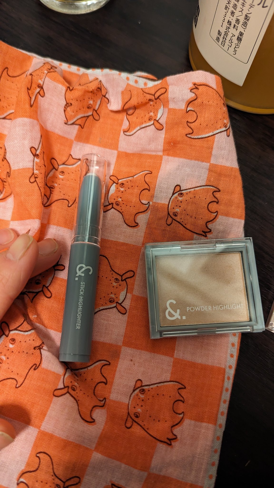 #百均ハイライター#イエベ人の肌にあるハイライトは肌のキメ関係なく一番星みたいに光るキラーンと光るラメなんて無い!アナログ絵の人の肌には金色を入れ所々絵具の強弱でハイライト表現教の方に!&の方のハイライター&.パウダーハイライトA01aわたし...