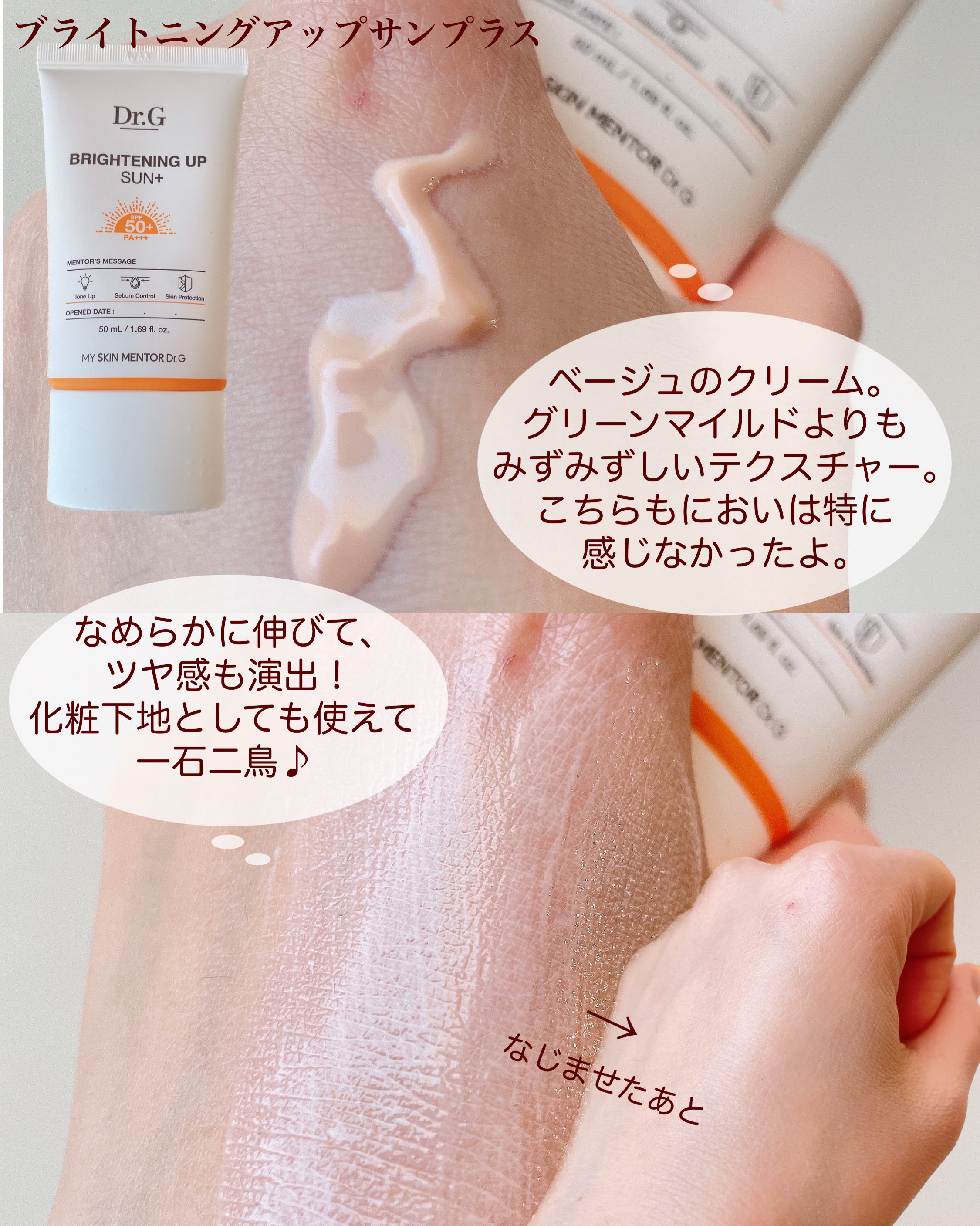 どちらもドクタージーで大人気な商品🤍✨️ グリーンマイルドアップサンプラスは、SPF50+ PA++++の敏感肌さんでも使いやすい日焼け止め🌞🩷 LDKのBestbuy賞にも選ばれたSPF50+ PA+++の下地兼日焼け止め🌞✨️