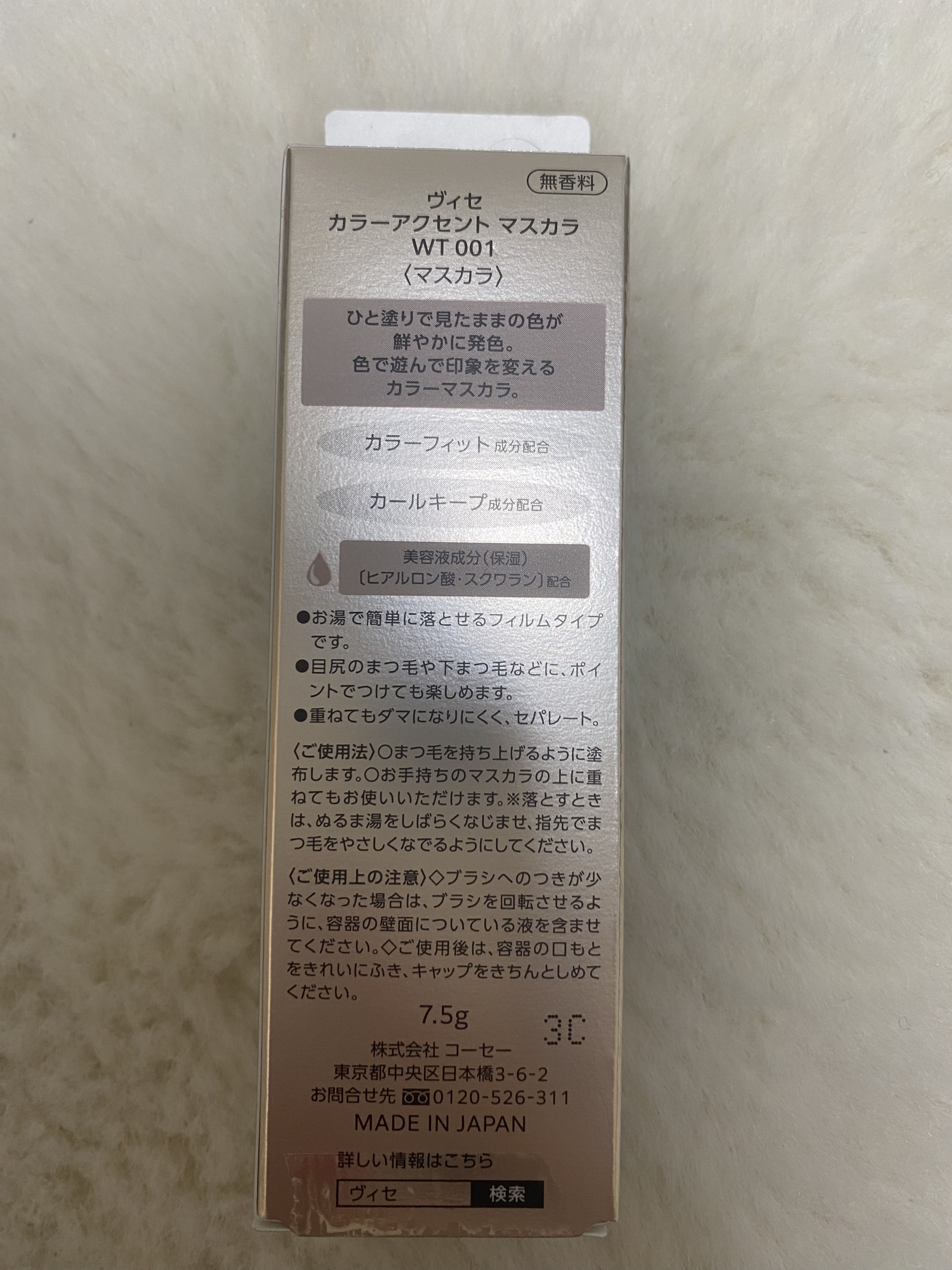 - 限定発売 ● ひと塗りで、見たままの色が鮮やかに発色するカラーマスカラです。 まつ毛に大胆に色をのせ、目もとの印象を自在にメイクします。 ● 発色を高めるカラーフィット成分と、下地のようにまつ毛の色をカバーする成分を配合。 まつ毛の色を隠し、見たままの色が鮮やかに発色します。 ● なめらかにのび広がり、密着性に優れたベースを採用。 重ね塗りしてもダマになりにくく、美しくセパレートしたまつ毛を叶えます。 ● まつ毛への付着力の高いカラーフィット成分と、塗りたてのカールを持続させるため、色ごとに最適なバランスに調整したカールキープ成分を配合。 鮮やかな発色と美しい仕上がりが長時間持続します。 ● まつ毛全体はもちろん、目尻のまつ毛や下まつ毛などにポイントでつけても、お楽しみいただけます。 ● お湯で簡単に落とせるフィルムタイプです。 ● 美容液成分配合。 ● 無香料
