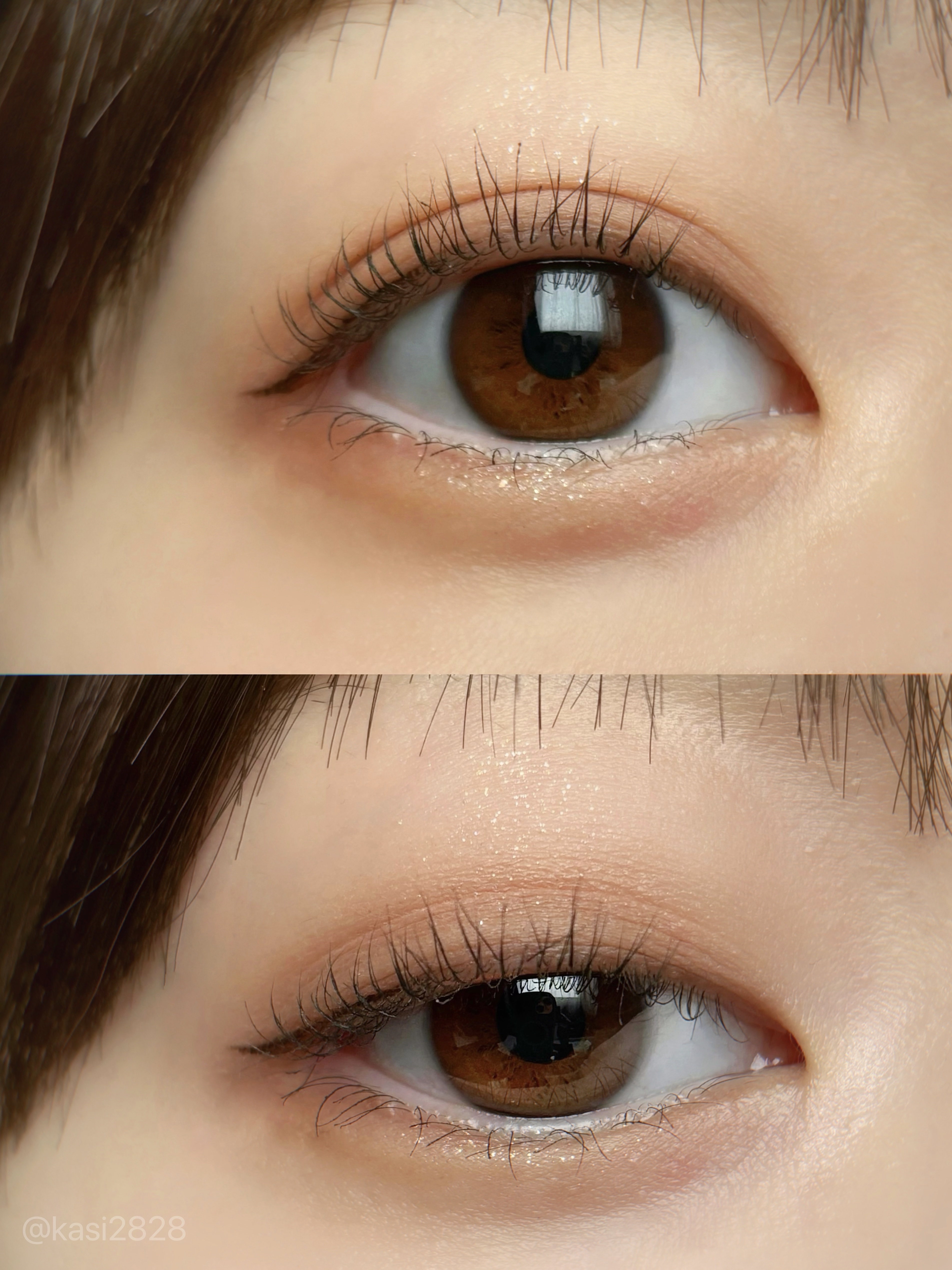 MOLAKプロデュース&イメージモデル宮脇咲良さん▶︎ドーリッシュブラウン3色のトーンで水光グラデーションが瞳に馴染み儚い目元に。細めのふちがあるのでくりっとお人形さんのような瞳に🧸💕水光グラデーションが綺麗すぎて感動した!!元からこの目です...