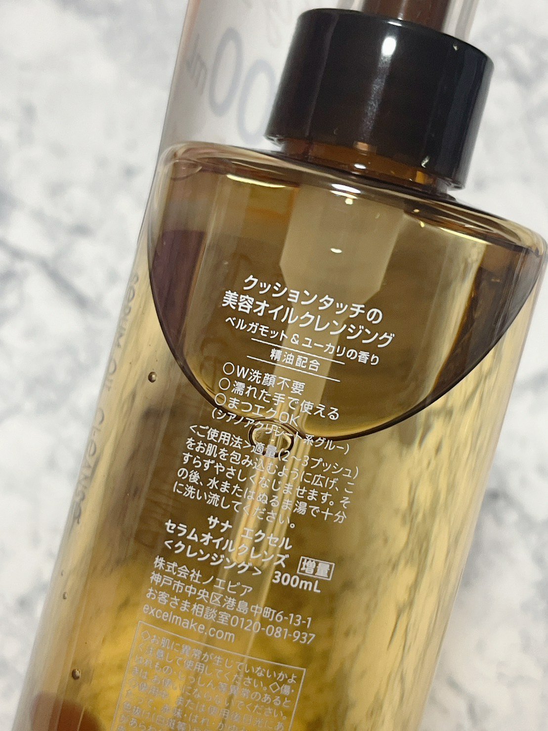 - やさしくお肌を包み込む、極上の使い心地クッションタッチのとろける美容オイルクレンジング。①厚みのあるクッションオイルで摩擦を軽減こすらず撫でるだけ、メイクを速やかにオフ。 ②うるおいに包まれる美容液発想クレンジング。贅沢7種の植物オイル配合。[アルガンオイル(アルガニアスピノサ核油)、ホホバ種子油、ブドウ種子油、スクワラン、メドウフォーム油、オリーブ果実油、マカデミア種子油 (すべて保湿)] ③至福の香りに包まれるベルガモット&ユーカリの香り(精油配合) ④W洗顔不要・濡れた手で使える・まつエクOK(シアノアクリレート系グルー) 中身の量が分かりやすいクリアなポンプ容器