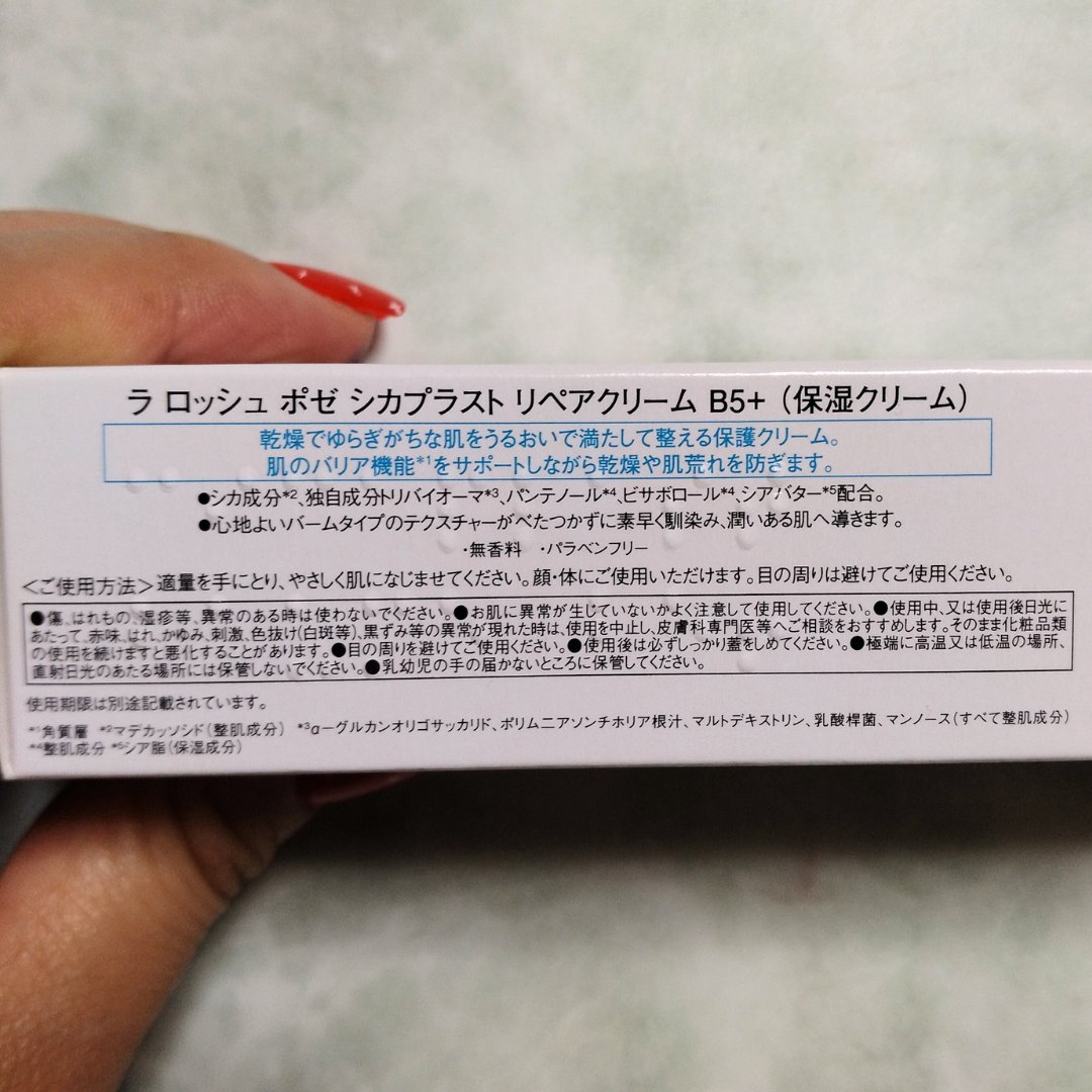 - 塗るだけSOSシールド うるおいの先、肌荒れ予防やダメージケア*1まで。 ①7種の肌悩み*2に。肌ダメージ*1を速攻ケア*3 ②独自のダーマCICAテクノロジー*4採用。 CICA成分*5、パンテノールB5*6、独自成分トリバイオーマ*7配合。 ③長時間*8見えない刺激*1から守るセカンドスキンシールド*9 *1 乾燥による *2カサつき、乾燥による肌荒れ防止、乾燥によるくすみ、キメの乱れ、乾燥ガサガサ肌への保湿、美容トリートメント後(肌管理後)、花粉などの飛散物汚れからの肌保護 *3 お手入れにより *4 ツボクサ葉エキス、α-グルカンオリゴサッカリド、ポリム二アソンチホリア根汁、乳酸桿菌、マンノース(全て整肌成分)、パンテノール(保湿・整肌成分) *5 ツボクサ葉エキス(整肌成分) *6 パンテノール(保湿・整肌成分) *7 α-グルカンオリゴサッカリド、ポリム二アソンチホリア根汁、乳酸桿菌、マンノース(全て整肌成分) *8 ラ ロッシュ ポゼ調べ。個人差があります。 *9 化粧膜