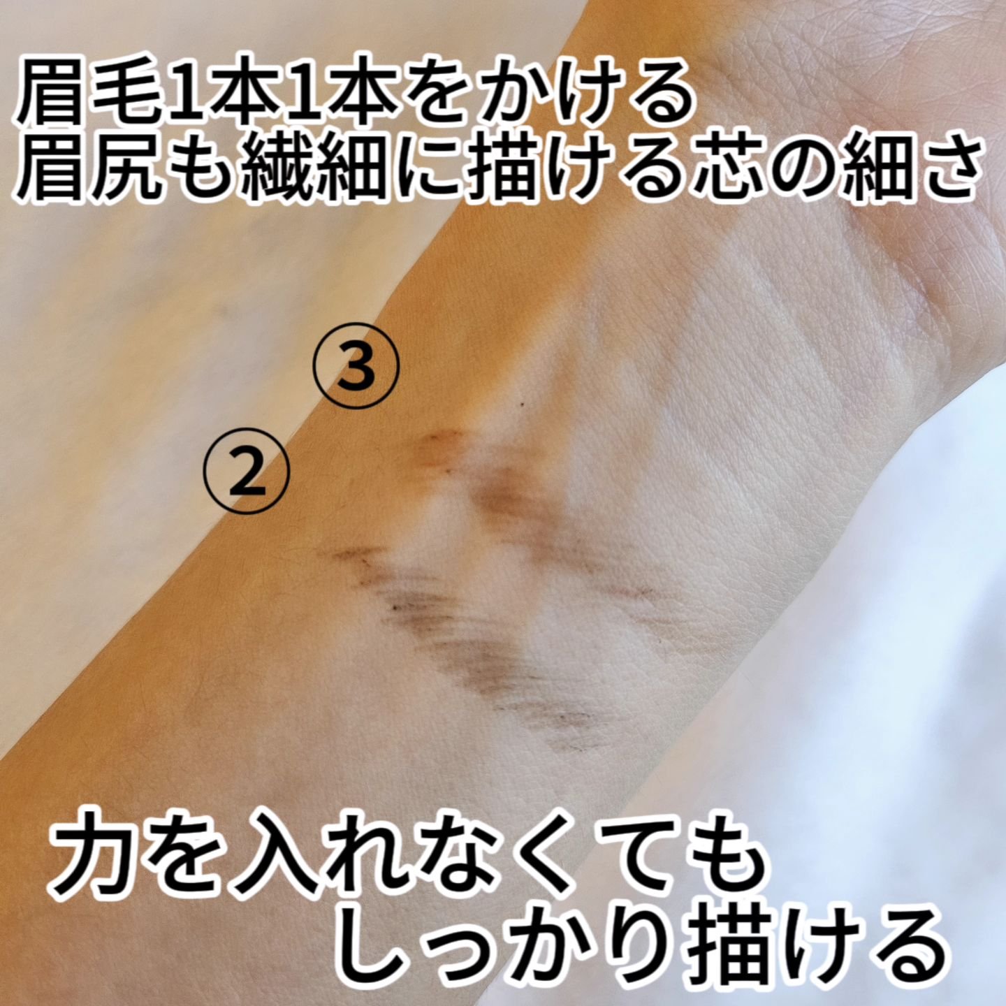 - 眉尻の1本1本まで描ける0.9mmのアイブロウ。 眉毛1本1本を描きやすく、眉尻も繊細に描ける超細芯。 力を入れなくてもしっかり描ける美発色タイプ。 水・汗・皮脂に強いウォータープルーフ。
