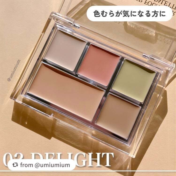 - 多彩なカラーをカスタマイズして肌悩みをカバーする高密着コンシーラーパレット