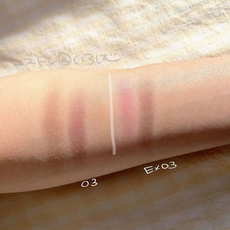 - <01 ブラウン> タルク、植物性スクワラン、ジステアリン酸Al、イソステアリン酸水添ヒマシ油、ケイ酸(Al/Mg)、トコフェロール、アルガニアスピノサ核油、カニナバラ果実油、(+/-)マイカ、酸化鉄、ステアロイルグルタミン酸2Na、酸化チタン、水酸化Al、グンジョウ <02 ピンクブラウン> タルク、植物性スクワラン、ジステアリン酸Al、イソステアリン酸水添ヒマシ油、ケイ酸(Al/Mg)、トコフェロール、アルガニアスピノサ核油、カニナバラ果実油、(+/-)マイカ、酸化鉄、ステアロイルグルタミン酸2Na、酸化チタン、水酸化Al、グンジョウ <03 パープルブラウン> タルク、植物性スクワラン、ジステアリン酸Al、イソステアリン酸水添ヒマシ油、ケイ酸(Al/Mg)、トコフェロール、アルガニアスピノサ核油、カニナバラ果実油、マイカ、酸化鉄、酸化チタン、ステアロイルグルタミン酸2Na、赤226、グンジョウ、水酸化Al、青404、硫酸Ba、酸化スズ <04 カーキブラウン> タルク、植物性スクワラン、ジステアリン酸Al、イソステアリン酸水添ヒマシ油、ケイ酸(Al/Mg)、トコフェロール、アルガニアスピノサ核油、カニナバラ果実油、マイカ、酸化鉄、酸化チタン、ステアロイルグルタミン酸2Na、赤226、グンジョウ、水酸化Al、青404、硫酸Ba、酸化スズ <05 オレンジブラウン> タルク、植物性スクワラン、ジステアリン酸Al、イソステアリン酸水添ヒマシ油、ケイ酸(Al/Mg)、トコフェロール、アルガニアスピノサ核油、カニナバラ果実油、(+/-)硫酸Ba、ステアロイルグルタミン酸2Na、水酸化Al、マイカ、酸化鉄、黄4、赤226、グンジョウ <06 カッパーブラウン> タルク、植物性スクワラン、ジステアリン酸Al、イソステアリン酸水添ヒマシ油、ケイ酸(Al/Mg)、ステアロイルグルタミン酸2Na、水酸化Al、トコフェロール、アルガニアスピノサ核油、カニナバラ果実油、硫酸Ba、マイカ、酸化鉄、酸化チタン、グンジョウ、赤226 <07 ラセットブラウン> タルク、植物性スクワラン、ジステアリン酸Al、イソステアリン酸水添ヒマシ油、ケイ酸(Al/Mg)、ステアロイルグルタミン酸2Na、水酸化Al、トコフェロール、アルガニアスピノサ核油、カニナバラ果実油、マイカ、酸化鉄、グンジョウ、酸化チタン、黄4、赤226 <08 プラムブラウン> タルク、スクワラン、ジステアリン酸Al、イソステアリン酸水添ヒマシ油、ケイ酸(Al/Mg)、ステアロイルグルタミン酸2Na、水酸化Al、トコフェロール、アルガニアスピノサ核油、カニナバラ果実油、ジパルミチン酸アスコルビル、シリカ、マイカ、酸化鉄、酸化チタン、グンジョウ、赤226、青404 <09 ヴィンテージカーキ> タルク、スクワラン、ジステアリン酸AI、イソステアリン酸水添ヒマシ油、ステアロイルグルタミン酸2Na、水酸化Al、トコフェロール、アルガニアスピノサ核油、カニナバラ果実油、ジパルミチン酸アスコルビル、マイカ、酸化鉄、酸化チタン、グンジョウ、酸化スズ <EX01 クリムゾンブラウン> タルク、スクワラン、ジステアリン酸AI、イソステアリン酸水添ヒマシ油、ステアロイルグルタミン酸2Na、水酸化AI、トコフェロール、アルガニアスピノサ核油、カニナバラ果実油、ジパルミチン酸アスコルビル、マイカ、酸化鉄、黄4、酸化チタン、グンジョウ、赤226