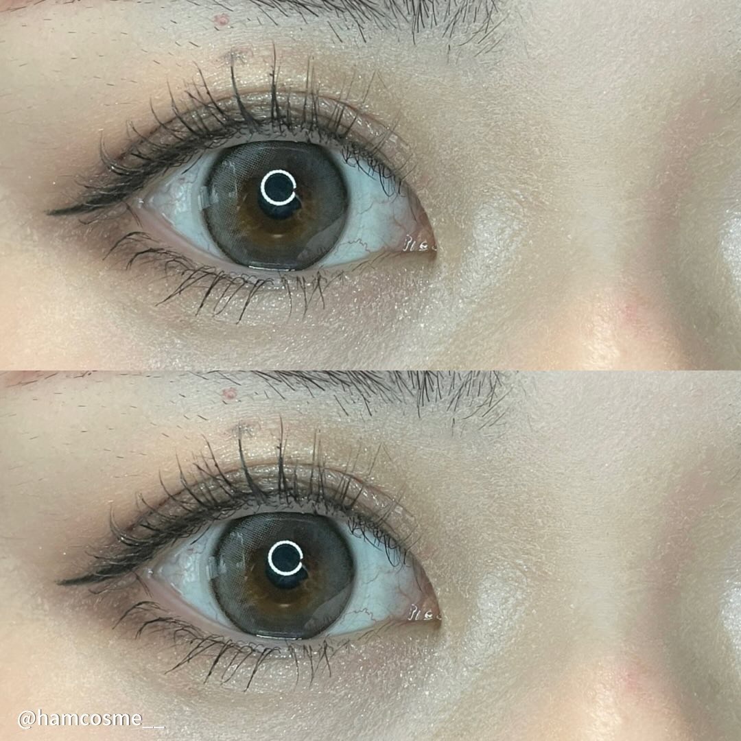 グレーの水光グラデーションが瞳に馴染むのに、細い黒フチのおかげで瞳がくりっとしてみえるよ🩶 私が使用したのは1DAYで ❤︎ UVカット効果 ❤︎ 高含水 ❤︎ イオン性 ❤︎ サンドイッチ構造の特徴があるよ。 乾燥しずらいと感じたのでイベントにもぴったりだと思います🎀 ᩚ