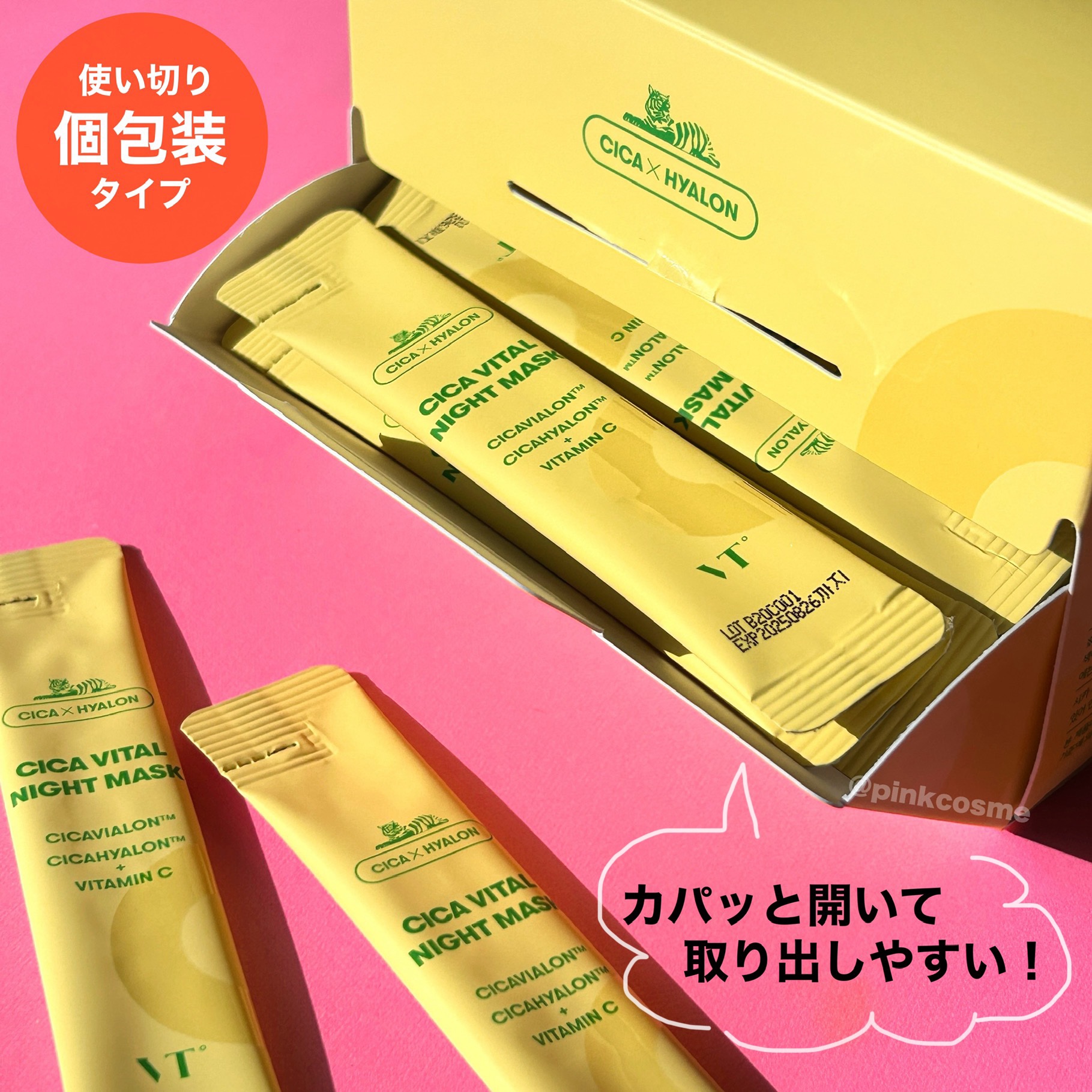 ⋆⋆💛VTシカバイタルマスク30枚入り確かAmazonで購入。こういう薄くてさっぱり系のマスク朝にするの好き✨️シカマスクは大丈夫なのにビタミンCが入ってるからなのか少しヒリピリした、もう慣れたけどリードル入ってたけど痛いんかな?💦ビビって怖...