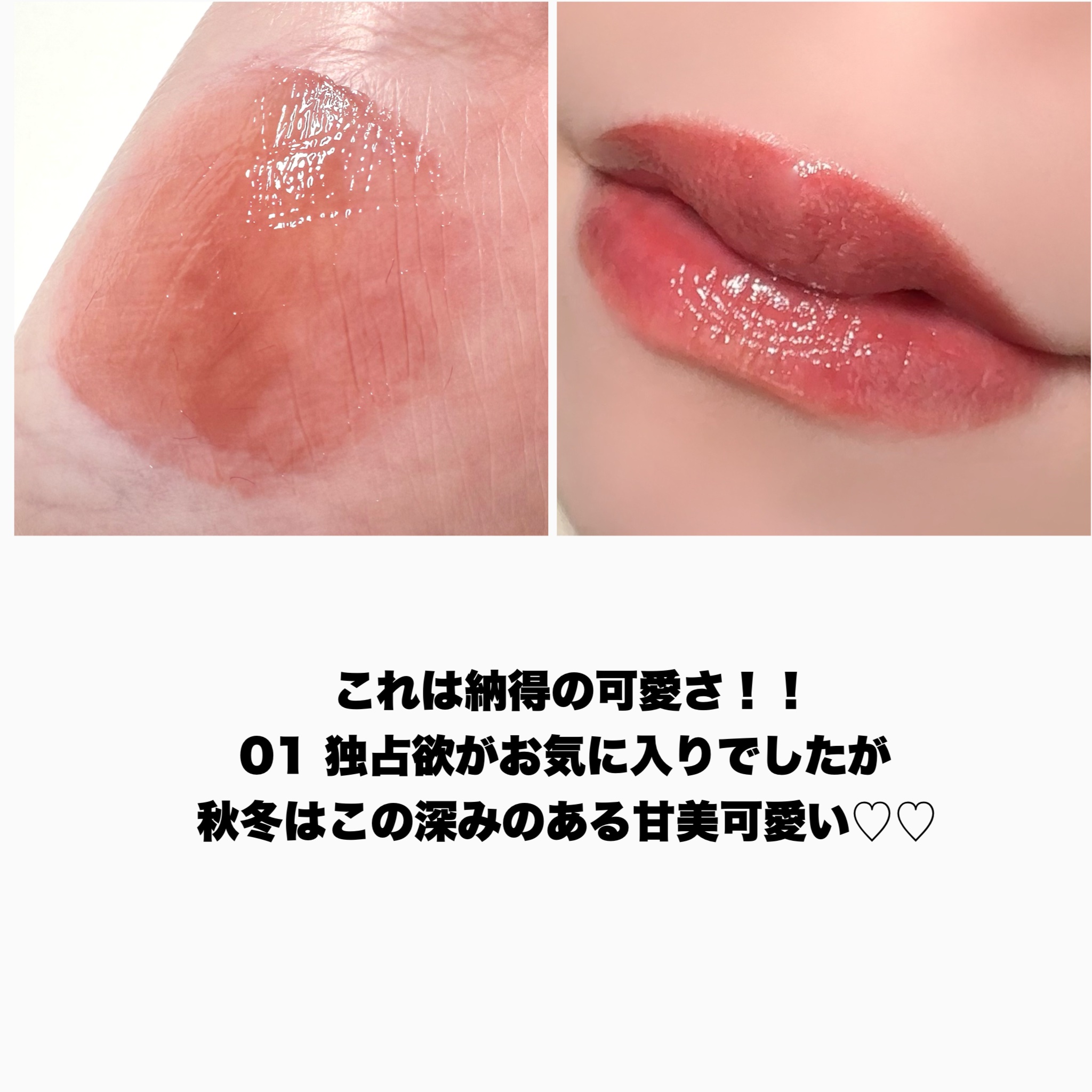 - <01 独占欲> ビリンゴ酸ジイソステアリル、水、ビスジグリセリルポリアシルアジペート-2、トリメチルシロキシフェニルジメチコン、水添ポリイソブテン、ポリフェニルシル セスキオキサン、ダイマージリノール酸ダイマージリノレイルビス(ベヘニル/イソステアリル/フィトステリル)、ジグリセリン、セチルPEG/PPG-10/1ジメチコン、1,2-ヘキサンジオール、セテアレス-20、(アクリル酸ヒドロキシエチル/アクリロイルジメチルタウリンNa)コポリマー、ポリソルベート60、スクワラン、フェノキ シエタノール、ベヘニルアルコール、メントキシプロパンジオール、酸化チタン、ポリグリセリン-3、エチルヘキシルグリセリン、黄5、赤227、イソステアリン酸 ソルビタン、グリセリン、赤104(1)、黄4、水酸化AI、ポリアクリル酸アンモニウム、青1、BG、ツバキ種子油、アルガニアスピノサ核油、アーモンド油、ティー ツリー葉油、ハチミツエキス <02 羨望> リンゴ酸ジイソステアリル、水、ビスジグリセリルポリアシルアジペート-2、トリメチルシロキシフェニルジメチコン、水添ポリイソブテン、ポリフェニルシルセ スキオキサン、ダイマージリノール酸ダイマージリノレイルビス(ベヘニル/イソステアリル/フィトステリル)、ジグリセリン、セチルPEG/PPG-10/1ジメチコン、1,2-ヘキサンジオール、セテアレス-20、(アクリル酸ヒドロキシエチル/アクリロイルジメチルタウリンNa)コポリマー、ポリソルベート60、スクワラン、フェノキ シエタノール、ベヘニルアルコール、酸化チタン、メントキシプロパンジオール、ポリグリセリン-3、エチルヘキシルグリセリン、黄5、黄4、赤227、イソステア リン酸ソルビタン、グリセリン、水酸化AI、ポリアクリル酸アンモニウム、BG、青1、アルガニアスピノサ核油、ツバキ種子油、アーモンド油、ティーツリー葉 油、ハチミツエキス <03 甘美> リンゴ酸ジイソステアリル、水、ビスジグリセリルポリアシルアジペート-2、トリメチルシロキシフェニルジメチコン、ポリフェニルシルセスキオキサン、ダイマージ リノール酸ダイマージリノレイルビス(ベヘニル/イソステアリル/フィトステリル)、水添ポリイソブテン、ジグリセリン、セチルPEG/PPG-10/1ジメチコン、1,2-ヘキ サンジオール、セテアレス-20、(アクリル酸ヒドロキシエチル/アクリロイルジメチルタウリンNa)コポリマー、ポリソルベート60、スクワラン、フェノキシエタノール、ベヘ ニルアルコール、メントキシプロパンジオール、酸化チタン、エチルヘキシルグリセリン、酸化鉄、黄4、赤227、イソステアリン酸ソルビタン、黄5、赤104、ポリアクリル酸 アンモニウム、水酸化Al、青1、BG、ツバキ種子油、アルガニアスピノサ核油、ティーツリー葉油、アーモンド油、ハチミツエキス、テトラ(ジ-t-ブチルヒドロキシヒドロケイ ヒ酸)ペンタエリスリチル <04 余韻> リンゴ酸ジイソステアリル、水、ビスジグリセリルポリアシルアジペート-2、トリメチルシロキシフェニルジメチコン、ポリフェニルシルセスキオキサン、ダイマージリノール酸ダイマージリノレイルビス(ベヘニル/イソステアリル/フィトステリル)、水添ポリイソブテン、ジグリセリン、セチルPEG/PPG-10/1ジメチコン、1,2-ヘキサンジオール、セテアレス-20、(アクリル酸ヒドロキシエチル/アクリロイルジメチルタウリンNa)コポリマー、ポリソルベート60、スクワラン、フェノキシエタノール、ベヘニルアルコール、酸化鉄、メントキシプロパンジオール、エチルヘキシルグリセリン、酸化チタン、黄5、赤227、イソステアリン酸ソルビタン、黄4、赤104、ポリアクリル酸アンモニウム、青1、水酸化Al、BG、ツバキ種子油、アルガニアスピノサ核油、ティーツリー葉油、アーモンド油、ハチミツエキス、テトラ(ジ-t-ブチルヒドロキシヒドロケイヒ酸)ペンタエリスリチル <05 イエローシロップ> ビスジグリセリルポリアシルアジペート-2、リンゴ酸ジイソステアリル、トリイソステアリン酸ポリグリセリル-2、(ヒマシ油/IPDI)コポリマー、ポリ メチルシルセスキオキサン、1,2-ヘキサンジオール、トリオクタノイン、マイクロクリスタリンワックス、ポリヒドロキシステアリン酸、ジメチルシリル化シリカ、トリ(カプリル 酸/カプリン酸)グリセリル、酢酸トコフェロール、メントキシプロパンジオール、ホウケイ酸(Ca/Al)、酸化鉄、合成フルオロフロゴパイト、イソステアリン酸、レシチン ミリスチン酸イソプロピル、パルミチン酸エチルヘキシル、酸化チタン、ポリリシノレイン酸ポリグリセリル-3、ティーツリー葉油、ツバキ種子油、アーモンド油、アルガニアスピノサ核油、水、酸化スズ、BG、ハチミツエキス、フェノキシエタノール、エチルヘキシルグリセリン