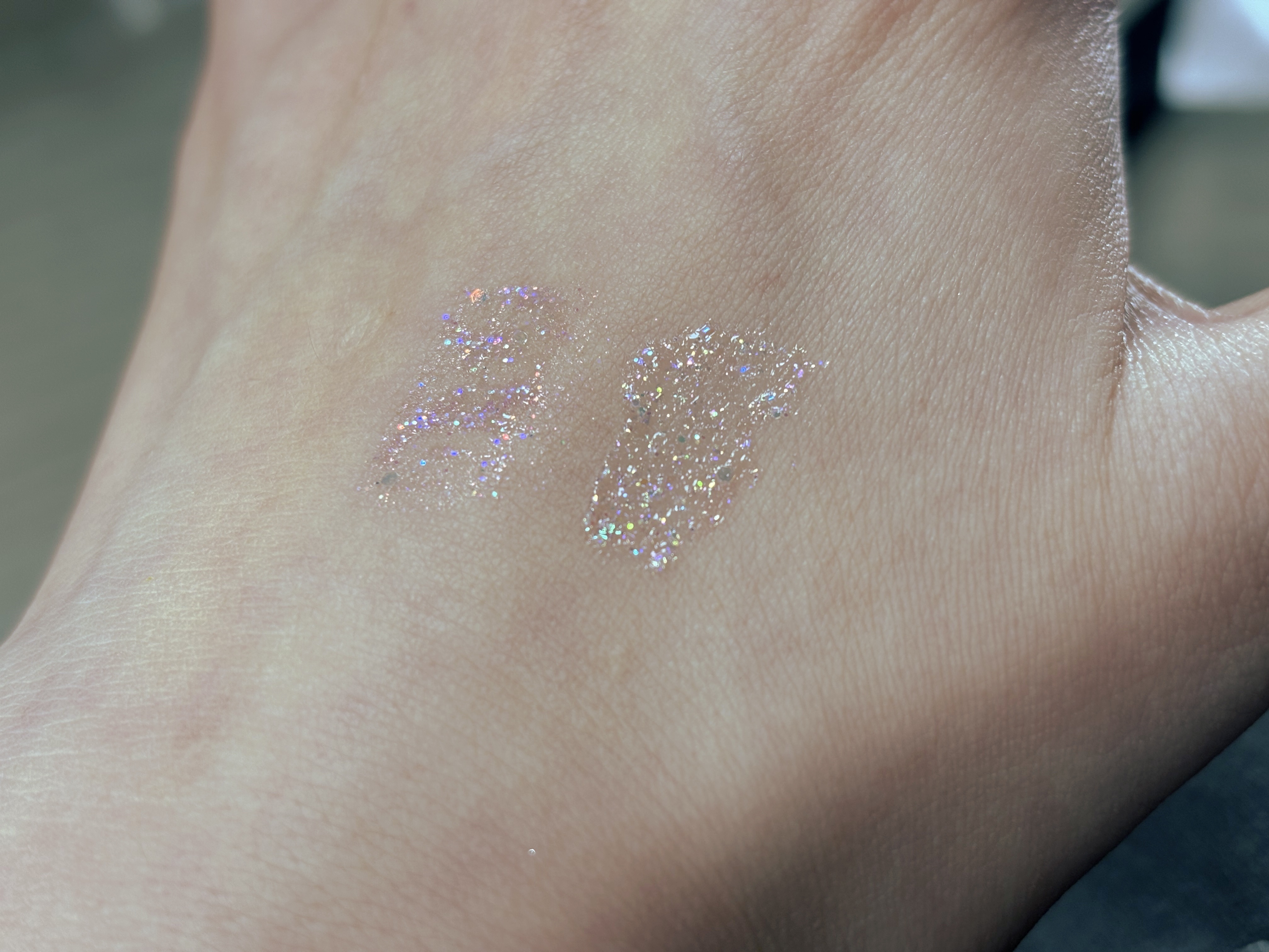 ロムアンドは細かいラメがたっぷりタイプ。 ゴールドとピンクのラメ。1番ラメが細かくて上品なので大人でも◎ ラメのサイズが小さい分落ちたのもわかりずらくて良い。 ZEESEAは液もピンク色なので存在感あり。 ラメはピンク、パープル、オレンジ、グリーンに見えます。1番華やか! カラフルにしたいならZEESEA✨ 耐久性は、アンリシアがNo.1👑 私は普段使いならロムアンド、イベント使いはアンリシアがいいなって思いました!