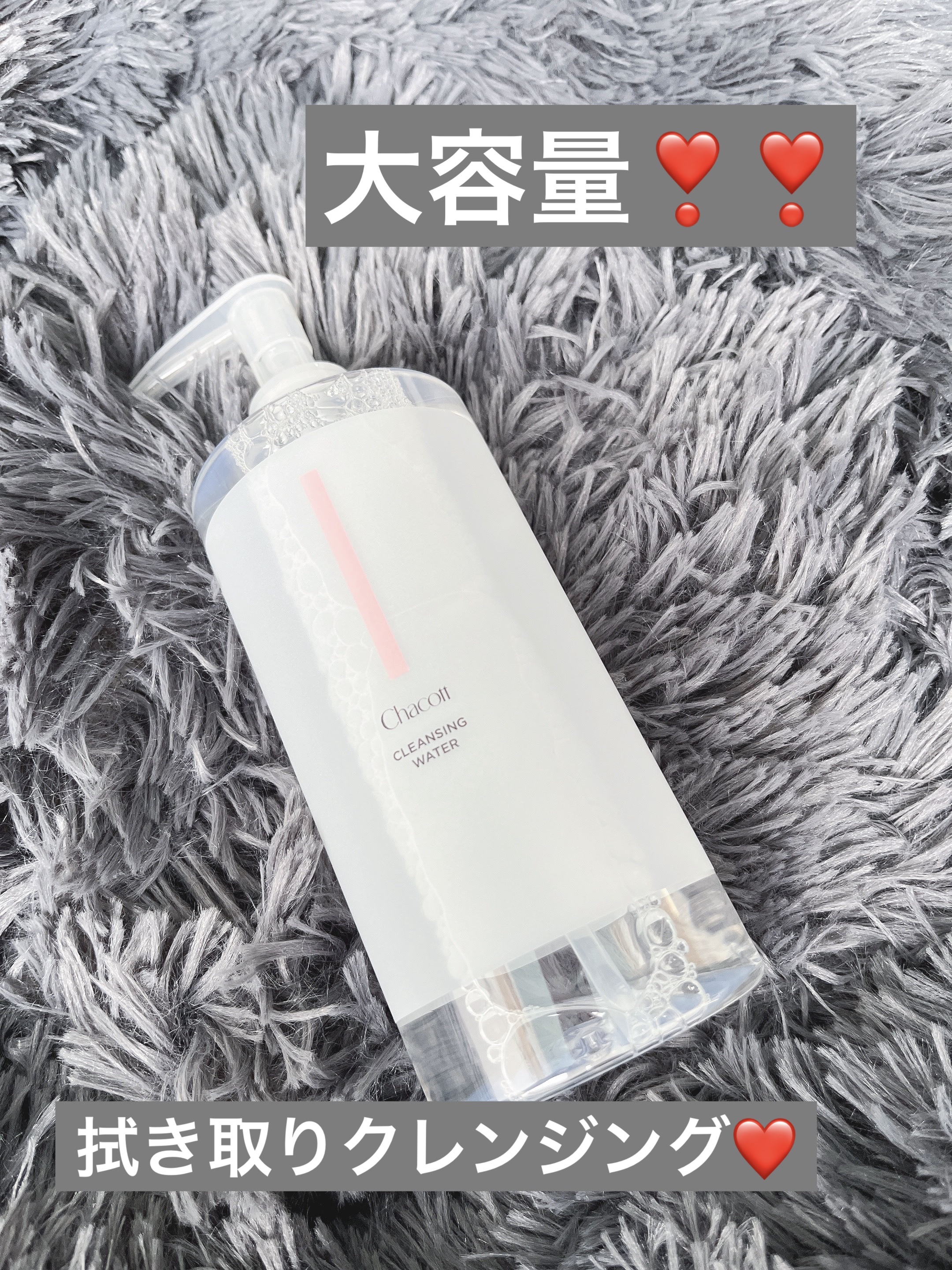 クレンジング、洗顔、保湿化粧水として使える。ポンプ式で500mlと大容量。 これで落ちるの?って疑っちゃってましたが、クレンジング力は思ってたよりあるかな。 嬉しい大容量でコスパも高くて嬉しい。