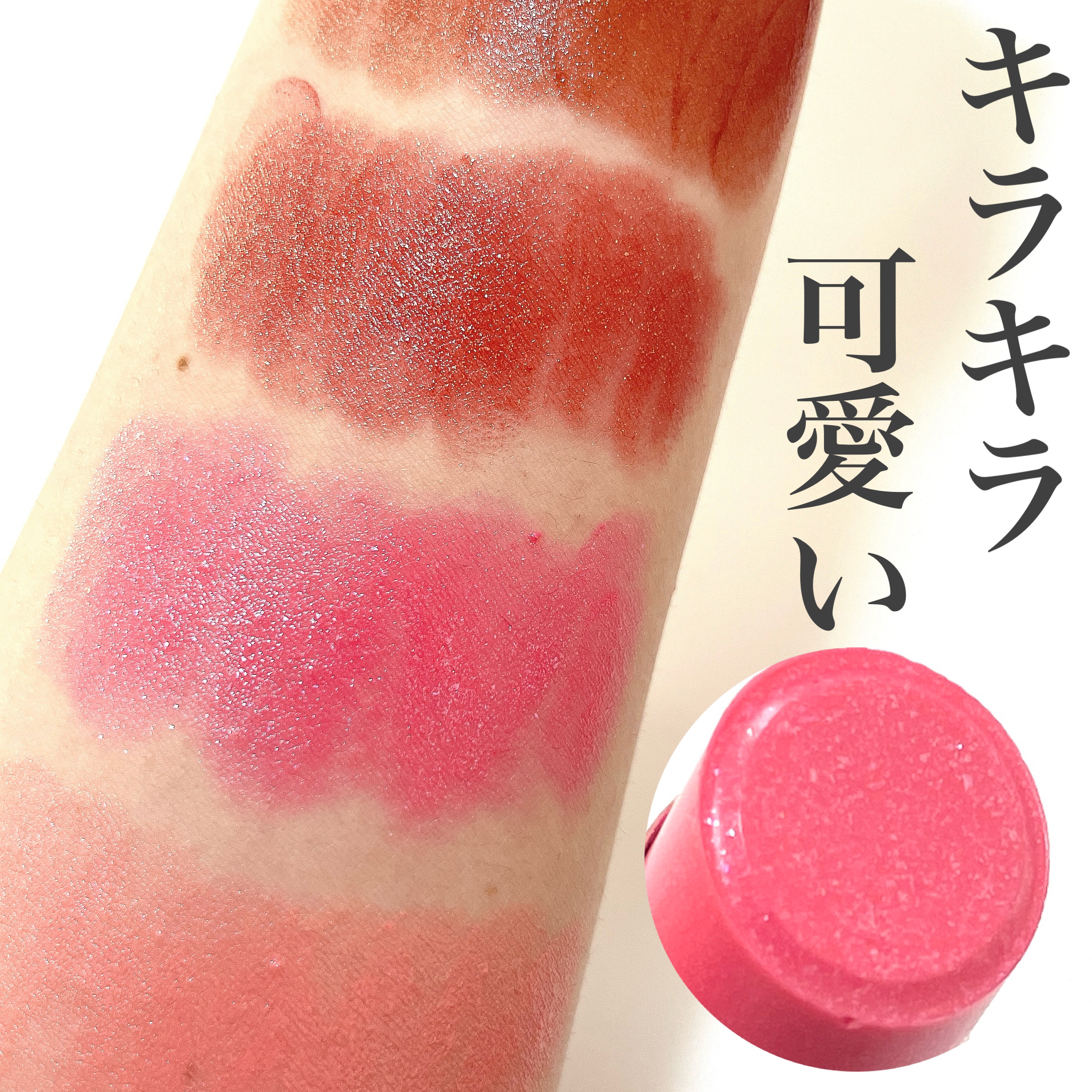しっとり滑らかな塗り心地でリップバームなので保湿も◎ 持続性はないものの発色抜群で一気に華やかな顔にしてくれるよ🤲 透け感のあるピンクコーラルで3つの中で1番使いやすいカラー🧡 難しいカラーと思ってたけど偏光ラメ?っぽいのが入っててめちゃくちゃ可愛かった😍1番のお気に入りー!!