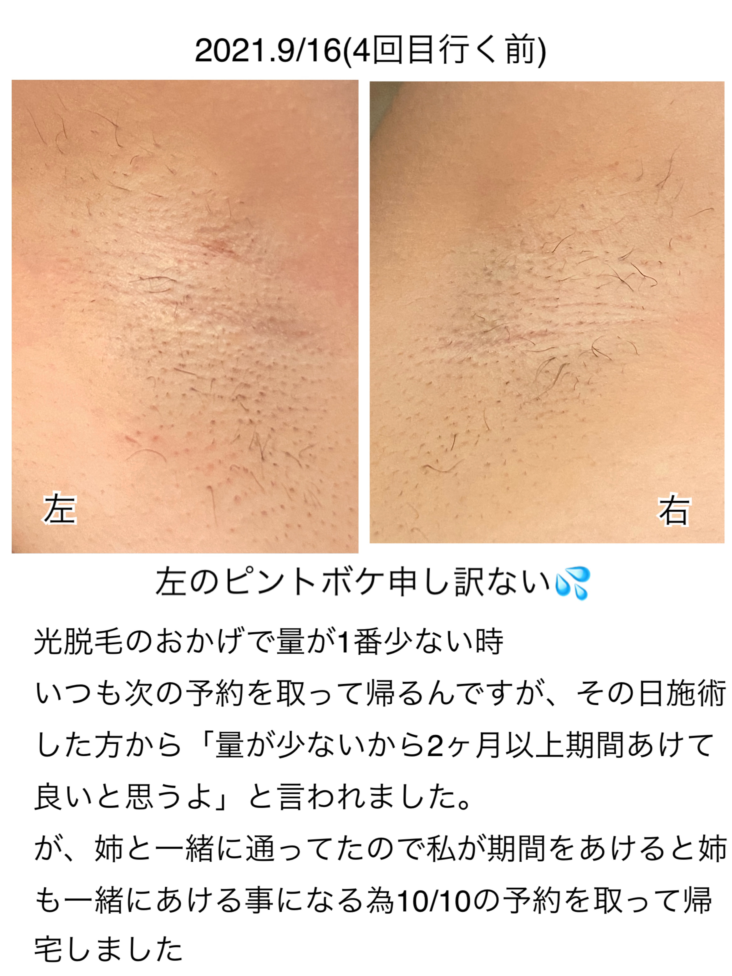 姉は過去ミュゼにて脇脱毛経験あり。普通より少ない毛量でスタート。