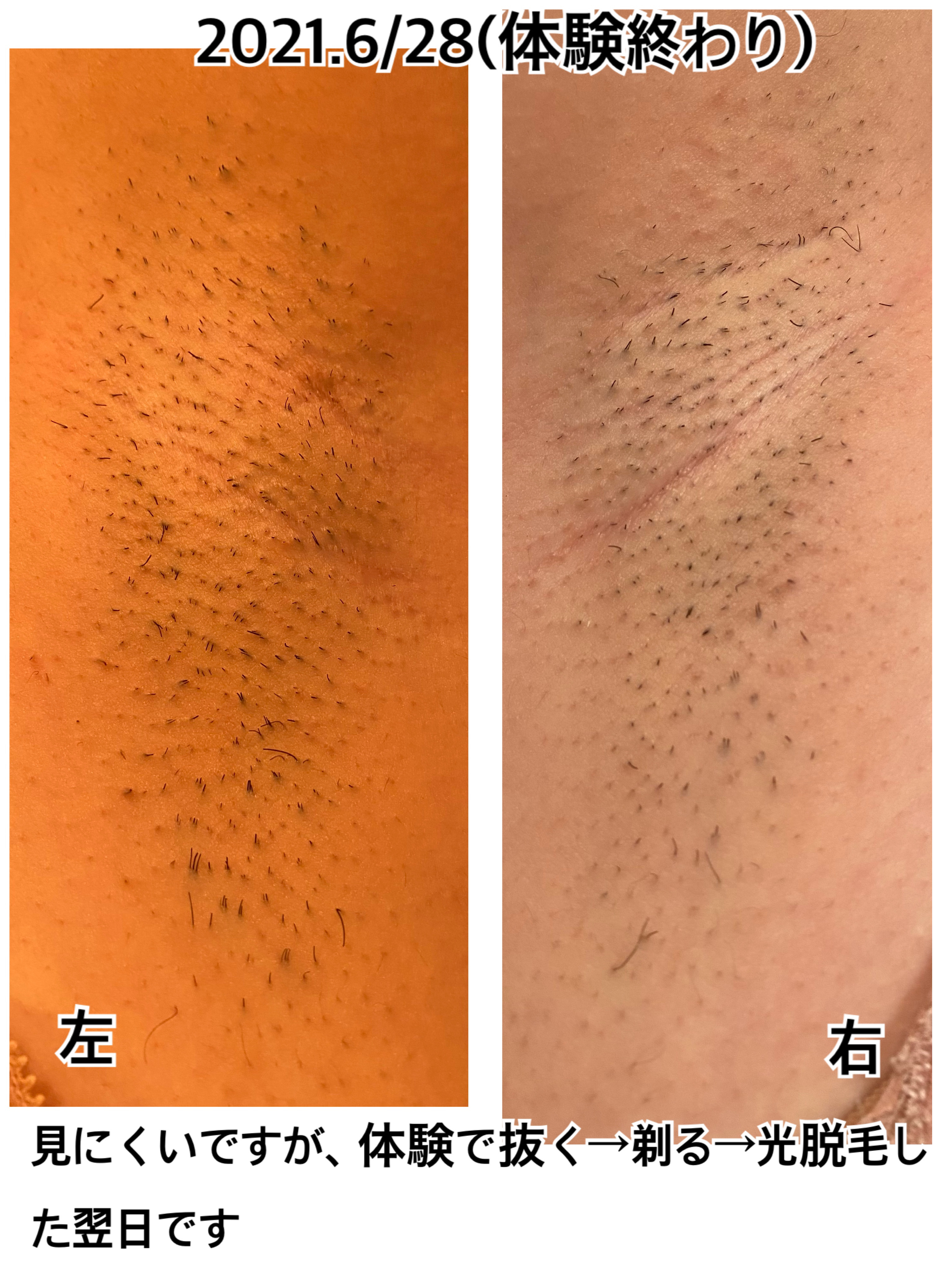 途中経過が良くてもそれは、光脱毛のおかげ。すぐ生えてくる。