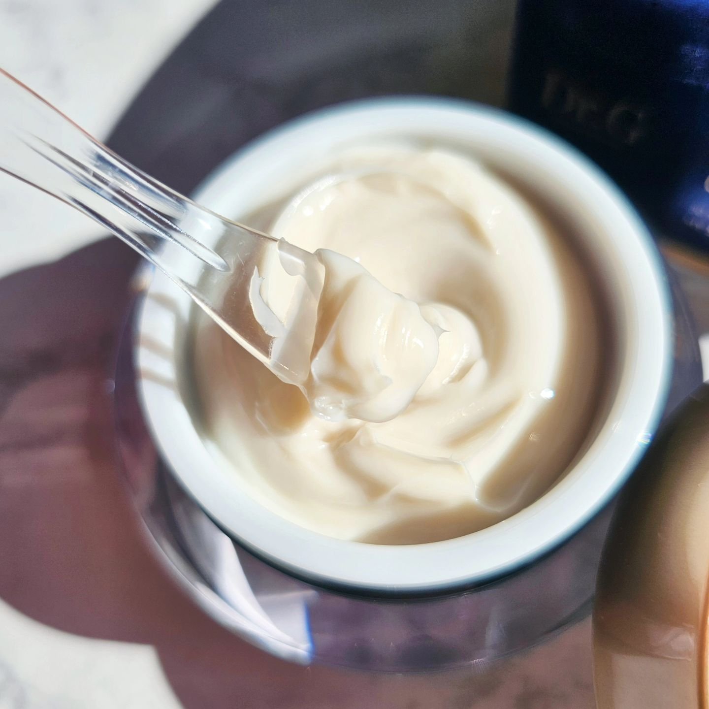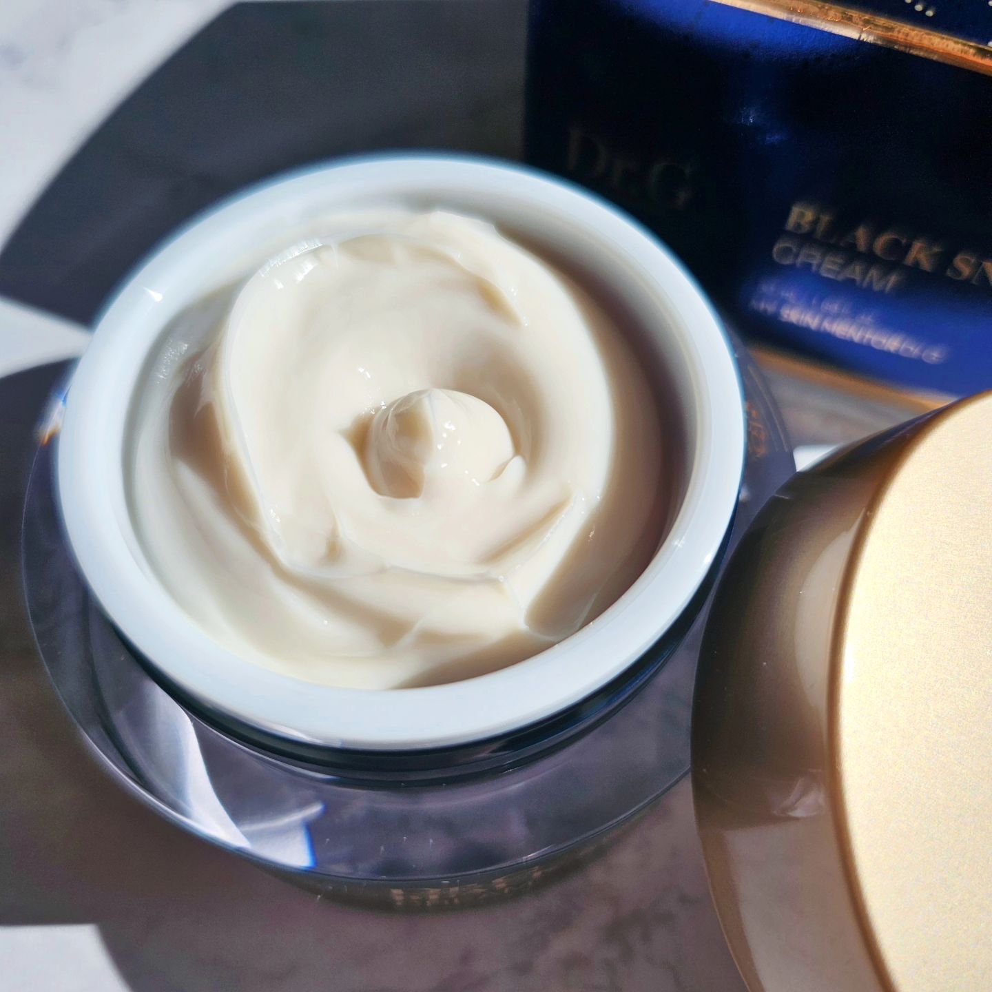 保湿だけでなく、美白、しわ、弾力のケアまでできる、クリーム! ブラックスネイル20%配合 ナイアシンアミド、ツボクサエキスなども含まれていて、様々なケアに対応。 もっちり濃厚で糸を引くテクスチャ! クリームで糸を引くって珍しい😳