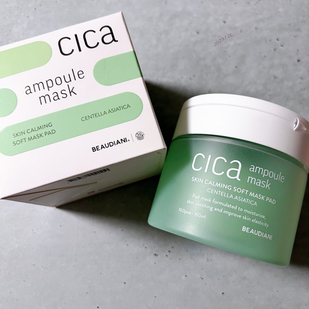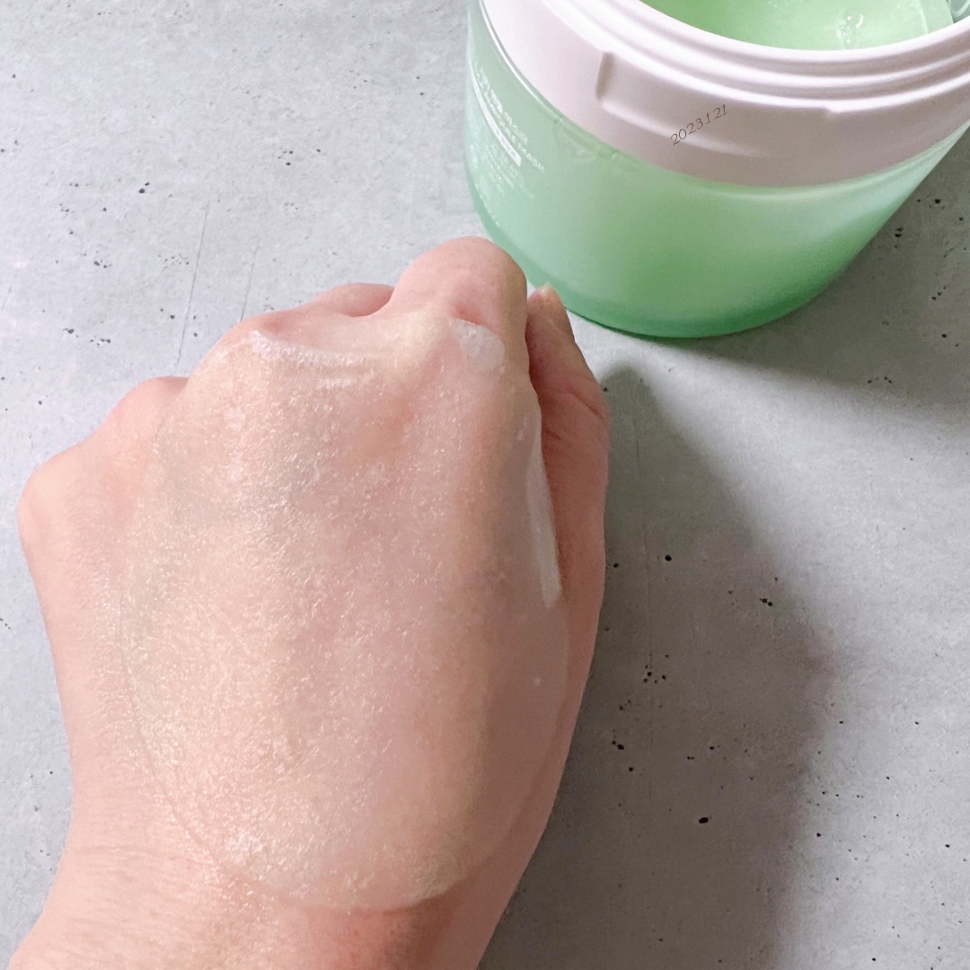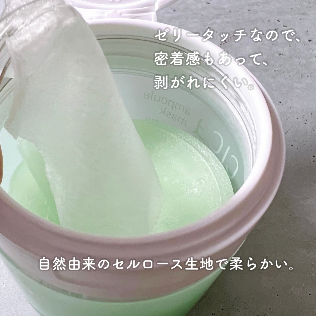 美容液びったびたなの😍😍伝わるかしら?そのびったびたの美容液をたっぷり含んだパッドは100%再生セルロース繊維を素材にした生地で、柔らかいゼリー状で肌に付けると気持ちいい😘💓 今もほっぺたに付けながらレビュー書いてます✍笑 使用感はCICAなのでしっとりめ😌でも肌なじみ早いからベタつきはなし🙅♀️香りはアロエに近いかな?🌿 なにせ100枚と大容量だからたっぷり惜しみなく使えるのいいね🙌💓