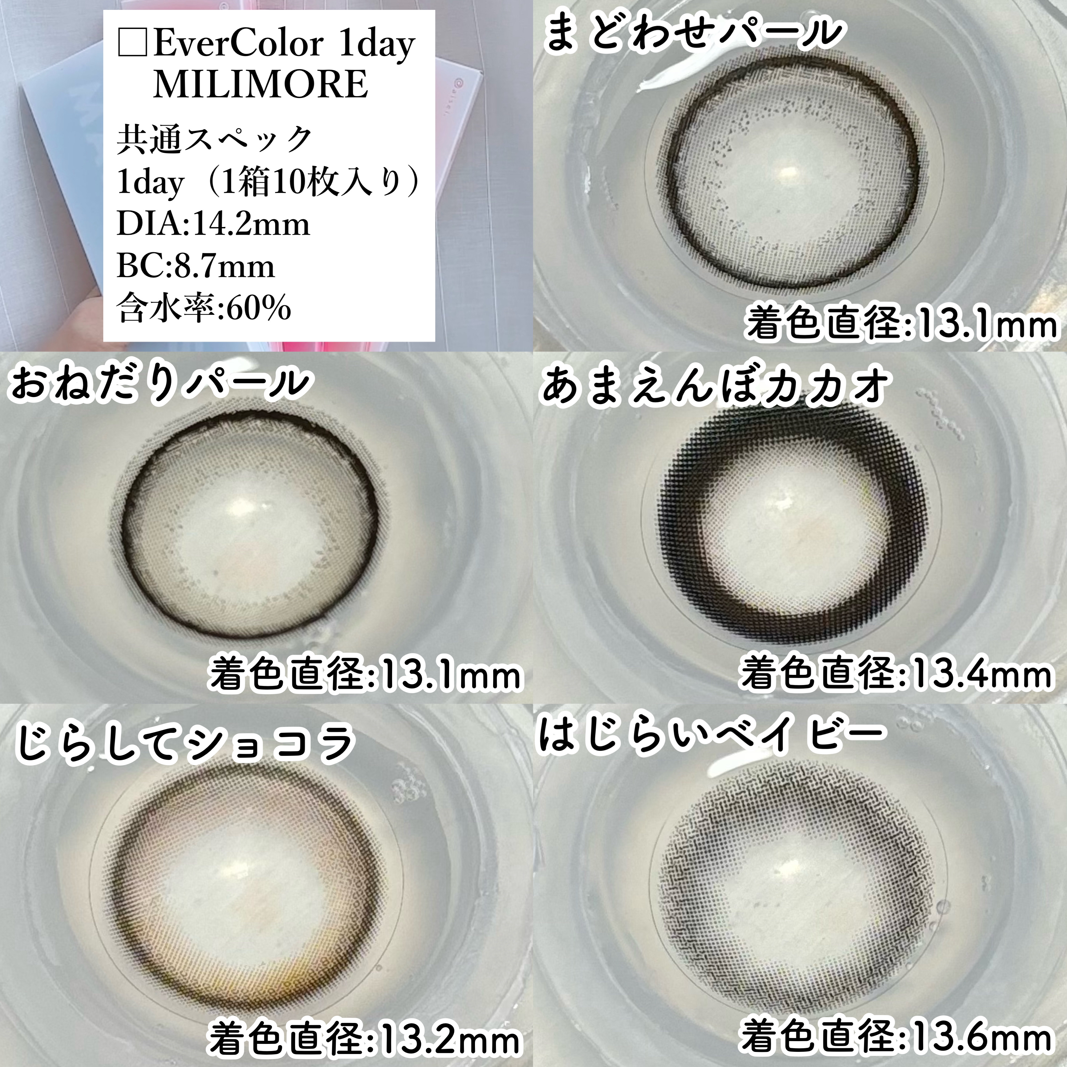 エバーカラーワンデイ🩷ミリモア4種比較🩷♡はじらいベイビー♡じらしてショコラ♡おねだりパール♡あまえんぼカカオ♡はじらいベイビー 着色直径13.6mmほわっと裸眼超えブラウン透明感あふれるダークブラウンで究極のピュア盛りおめめに💓♡じらしてシ...