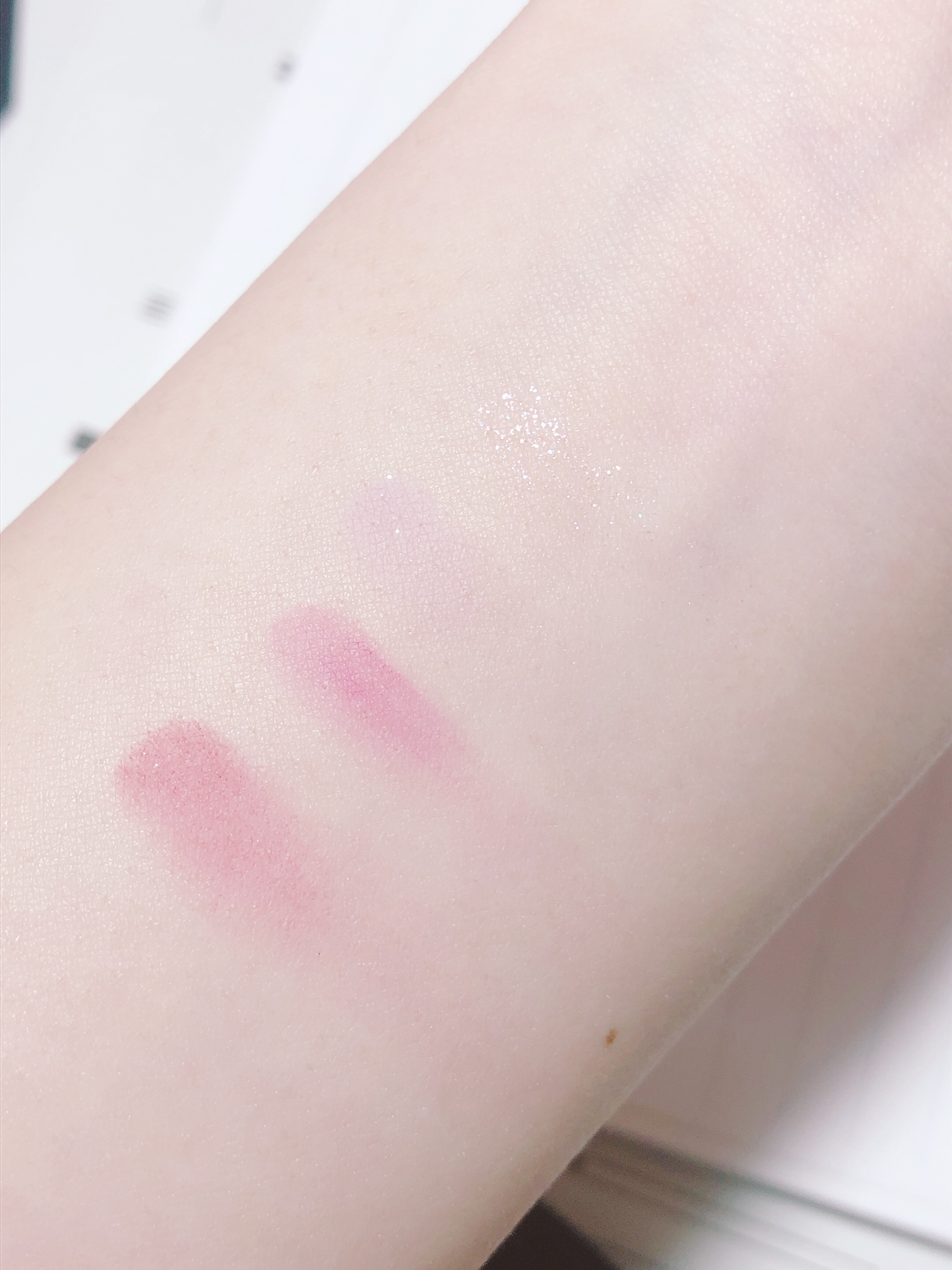 ふわっふわで分厚いパフ! プチプラとは思えないほどふわふわで気持ちいので1回店頭とかで見かけたら触ってみてください! しっとりめのパウダー しっとりしたテクスチャーのパウダーで、保湿パウダーと言うだけあると思いました!乾燥とかで困っている人いたらぜひ使ってみてほしいです!! 私は2色展開で両方つかってみたのですが、あまり違いを感じられませんでした、、😢私的には若干紫のが透明感ある、、、かな、、?くらいでした! パケ、めっちゃかわいいんですけど結構おおきめになっていて、ちっちゃめのポーチで持ち歩いたりするには不便かな〜と思いました!おうちで使うのには全然大丈夫だと思います!