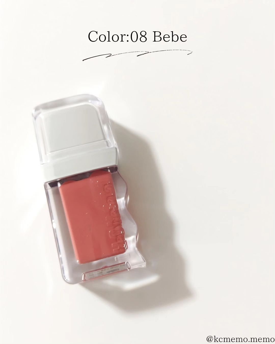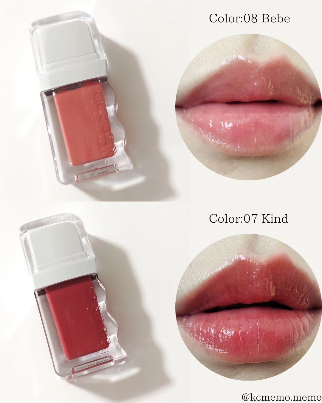 - <01 ソフィー(Surfy)> リンゴ酸ジイソステアリル、ジフェニルシロキシフェニルトリメチコン、精製水、ジフェニルジメチコン、ビスジグリセリルポリアシルアジペート-2、水添ポリイソブテン、ポリグリセリン-3、ポリソルベート60、セチルPEG/PPG-10/1ダイメチコン、イソステアリン酸ソルビタン、BG、ペンチレングリコール、1,2-ヘキサンジオール、ダイメジメチコン、アクリル酸ヒドロキシエチル/ナトリウムアクリロイルジメチルタウリン酸共重合体スクアラン、セテアレス-20、二酸化チタン、エチルヘキシルグリセリン、赤色227号、黄色5 号、香料、赤色104号(1)、水酸化酸化アルミニウム、ポリアクリル酸アンモニウム溶液、黄色4号、フェノキシエタノール、マカデミア種子油、ローズヒップ油、ツバキ油、トコフェロール <02 ピンクラッシュ(Pinkrush)> リンゴ酸ジイソステアリル、ジフェニルシロキシフェニルトリメチコン、精製水、ビスジグリセリルポリアシルアジペート-2、ジフェニルジメチコン、水添ポリイソブテン、ポリグリセリン-3、ポリソルベート60、セチルPEG/PPG-10/1ダイメチコン、イソステアリン酸ソルビタン、BG、ダイメジメチコン、ペンチレングリコール、1,2-ヘキサンジオール、アクリル酸ヒドロキシエチル/ナトリウムアクリロイルジメチルタウリン酸共重合体スクアラン、セテアレス-20、二酸化チタン、エチルヘキシルグリセリン、赤色227号、黄色5 号、香料、水酸化酸化アルミニウム、ポリアクリル酸アンモニウム溶液、フェノキシエタノール、マカデミア種子油、ローズヒップ油、ツバキ油、トコフェロール <03 グレア(Glare) > リンゴ酸ジイソステアリル、ジフェニルシロキシフェニルトリメチコン、精製水、ビスジグリセリルポリアシルアジペート-2、ジフェニルジメチコン、水添ポリイソブテン、ポリグリセリン-3、ポリソルベート60、セチルPEG/PPG-10/1ダイメチコン、イソステアリン酸ソルビタン、BG、ペンチレングリコール、1,2-ヘキサンジオール、ダイメジメチコン、アクリル酸ヒドロキシエチル/ナトリウムアクリロイルジメチルタウリン酸共重合体スクアラン、セテアレス-20、二酸化チタン、エチルヘキシルグリセリン、黄色5 号、香料、赤色104号(1)、赤色227号、水酸化酸化アルミニウム、ポリアクリル酸アンモニウム溶液、黄色4号、フェノキシエタノール、ブリリアントブルーFCF、マカデミア種子油、ローズヒップ油、ツバキ油、トコフェロール <04 ウィッティー(Witty)> リンゴ酸ジイソステアリル、ジフェニルシロキシフェニルトリメチコン、精製水、ビスジグリセリルポリアシルアジペート-2、ジフェニルジメチコン、水添ポリイソブテン、ポリグリセリン-3、ポリソルベート60、セチルPEG/PPG-10/1ダイメチコン、イソステアリン酸ソルビタン、BG、ダイメジメチコン、ペンチレングリコール、1,2-ヘキサンジオール、アクリル酸ヒドロキシエチル/ナトリウムアクリロイルジメチルタウリン酸共重合体スクアラン、セテアレス-20、二酸化チタン、黄色5 号、赤色227号、エチルヘキシルグリセリン、香料、水酸化酸化アルミニウム、ポリアクリル酸アンモニウム溶液、フェノキシエタノール、マカデミア種子油、ローズヒップ油、ツバキ油、トコフェロール <05 パンチ(Punch)> リンゴ酸ジイソステアリル、ジフェニルシロキシフェニルトリメチコン、精製水、ジフェニルジメチコン、ビスジグリセリルポリアシルアジペート-2、水添ポリイソブテン、ポリグリセリン-3、ポリソルベート60、セチルPEG/PPG-10/1ダイメチコン、イソステアリン酸ソルビタン、BG、ペンチレングリコール、1,2-ヘキサンジオール、ダイメジメチコン、アクリル酸ヒドロキシエチル/ナトリウムアクリロイルジメチルタウリン酸共重合体二酸化チタン、スクアラン、セテアレス-20、黄色5 号、エチルヘキシルグリセリン、香料、赤色227号、赤色104号(1)、水酸化酸化アルミニウム、ポリアクリル酸アンモニウム溶液、フェノキシエタノール、マカデミア種子油、ローズヒップ油、ツバキ油、トコフェロール <06 ディア(Dear)> リンゴ酸ジイソステアリル、ジフェニルシロキシフェニルトリメチコン、精製水、ジフェニルジメチコン、ビスジグリセリルポリアシルアジペート-2、水添ポリイソブテン、ポリグリセリン-3、ポリソルベート60、セチルPEG/PPG-10/1ダイメチコン、イソステアリン酸ソルビタン、BG、ペンチレングリコール、1,2-ヘキサンジオール、ダイメジメチコン、アクリル酸ヒドロキシエチル/ナトリウムアクリロイルジメチルタウリン酸共重合体スクアラン、セテアレス-20、二酸化チタン、エチルヘキシルグリセリン、黄色5 号、赤色227号、香料、水酸化酸化アルミニウム、黄色4号、ポリアクリル酸アンモニウム溶液、フェノキシエタノール、マカデミア種子油、ブリリアントブルーFCF、ローズヒップ油、ツバキ油、トコフェロール <07 カインド(Kind)> リンゴ酸ジイソステアリル、ジフェニルシロキシフェニルトリメチコン、精製水、ジフェニルジメチコン