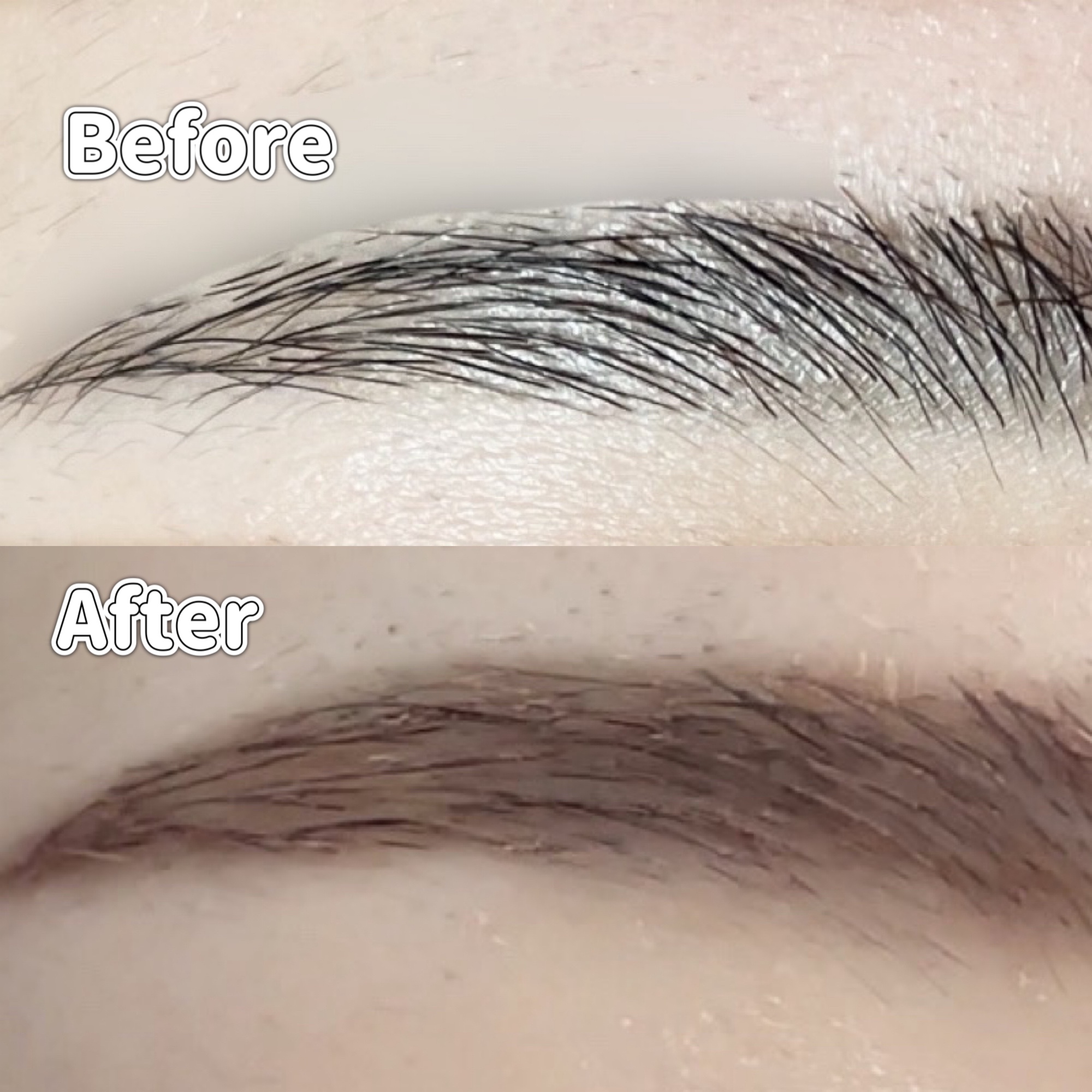 良いところ ・ガッツリ眉毛の存在感を無くす ・ブラシ塗りやすい 微妙なところ ・塗った瞬間からパリパリしていて 想像してたふんわり感は無かった ・私みたいに眉毛がたくさん生えてると地肌側の毛に付かないので毛流れに逆らって塗らないといけない🥺 ・上から眉マスカラが重ねづらい