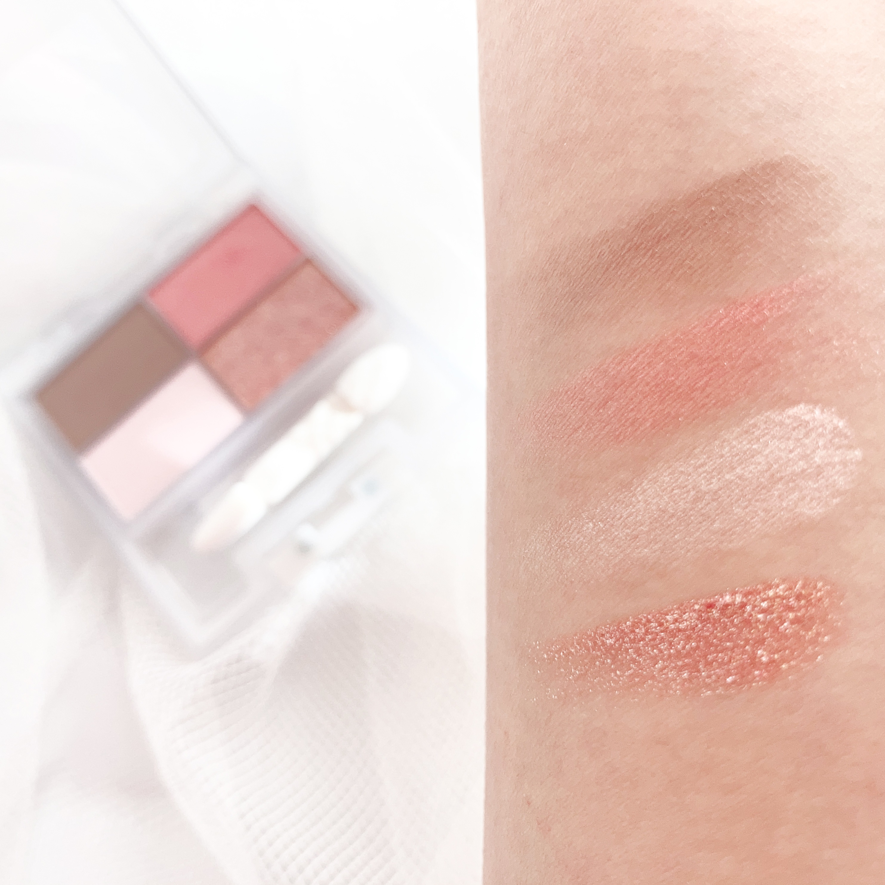 ハイライトはグリーンパールが効いてます! グリーンは赤みを消してくれる色ですが、場合によっては不健康に見えてしまうこともあると思うのですが、こちらはひたすら、絶妙な立体感に貢献。 オンラインミーティングでも光を反射して小顔効果抜群。 かつ、元気そうな印象にしてくれます。 完全使い切りまで、じっくり楽しんでいきたいパレットです…!