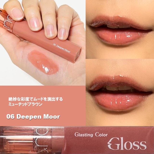 06 Deepen Moor 絶妙な彩度で ムードを演出する ミューテッドブラウン イエベさん大好物色! ベージュ系、ブラウン系、 オレンジ系、イエロー系、 どんなメイクにも合う 万能色です! これ1本でも、 手持ちのリップと 重ねても ツヤツヤぷるぷるに 仕上がるので おすすめです♪