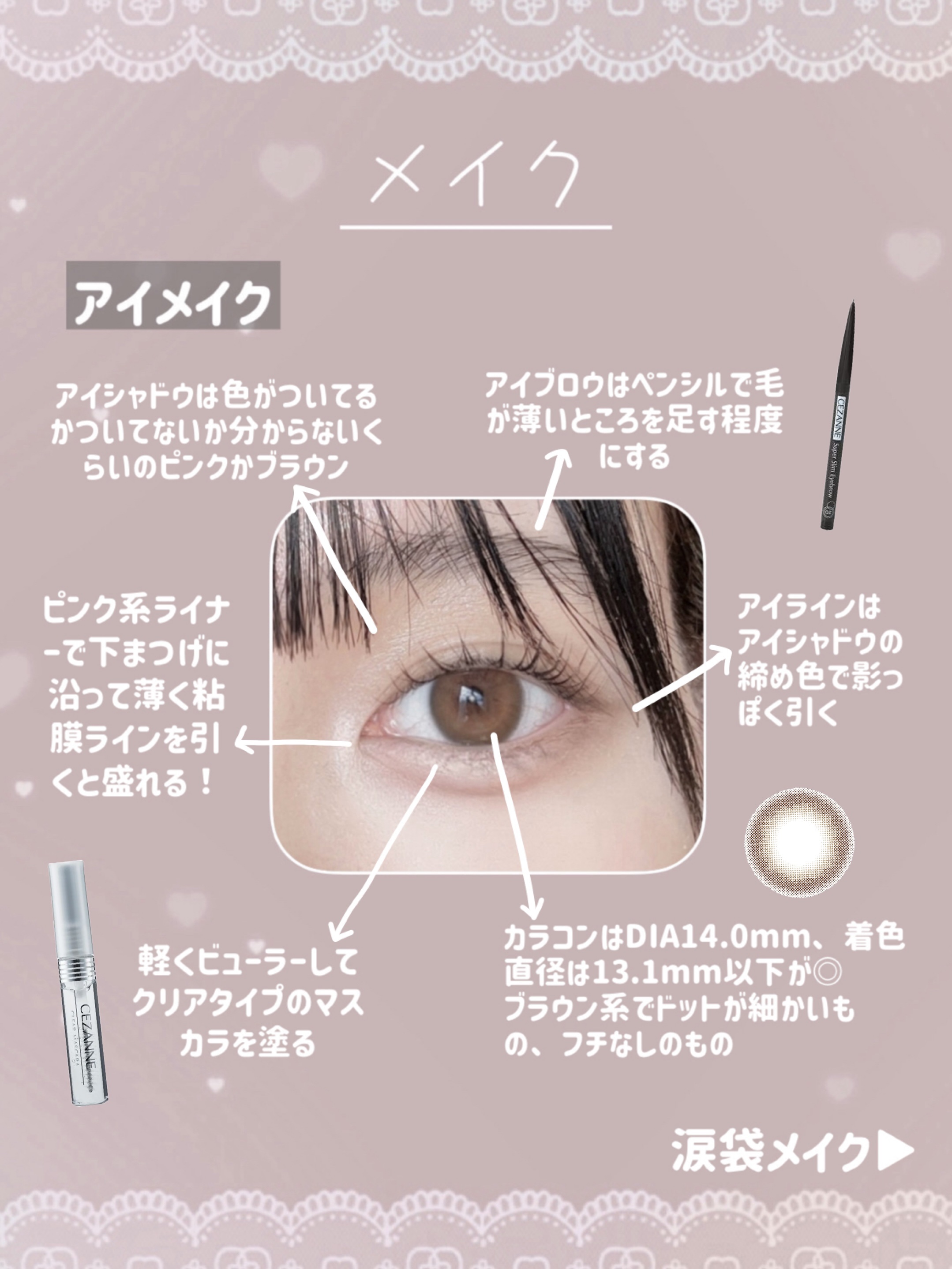 rom&nd ベターザンパレット 01PAMPAS GARDEN キャンメイク アイバッグコンシーラー 02ピンクベージュ CEZANNE ストレッチコンシーラー 30オレンジ系 これどんなに濃いクマも消える◎ やり方は画像を見てください🫶🏻 ラメを使わずに盛りたい時や、あざとく盛りたい時におすすめ!