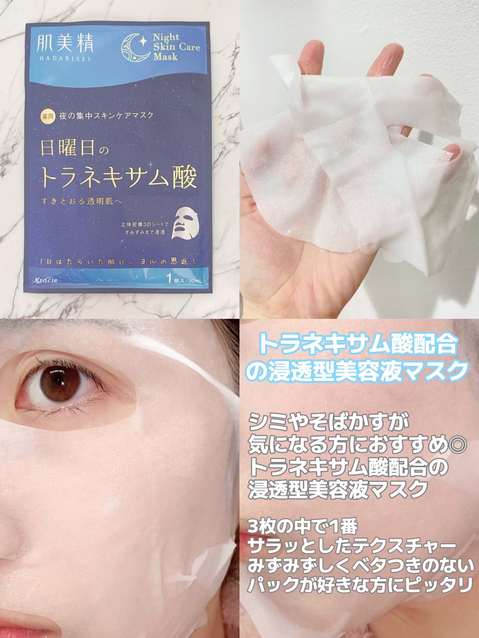 ![薬用水曜日のナイトスキンケアマスク[医薬部外品]/肌美精/シートマスク・パックを使ったクチコミ(1枚目)](https://cloudflare.lipscosme.com/image/942ba2e833e444855ed632b6-1705743910.png?auto=avif%2Cwebp&fio=1&orient=1&width=1424)