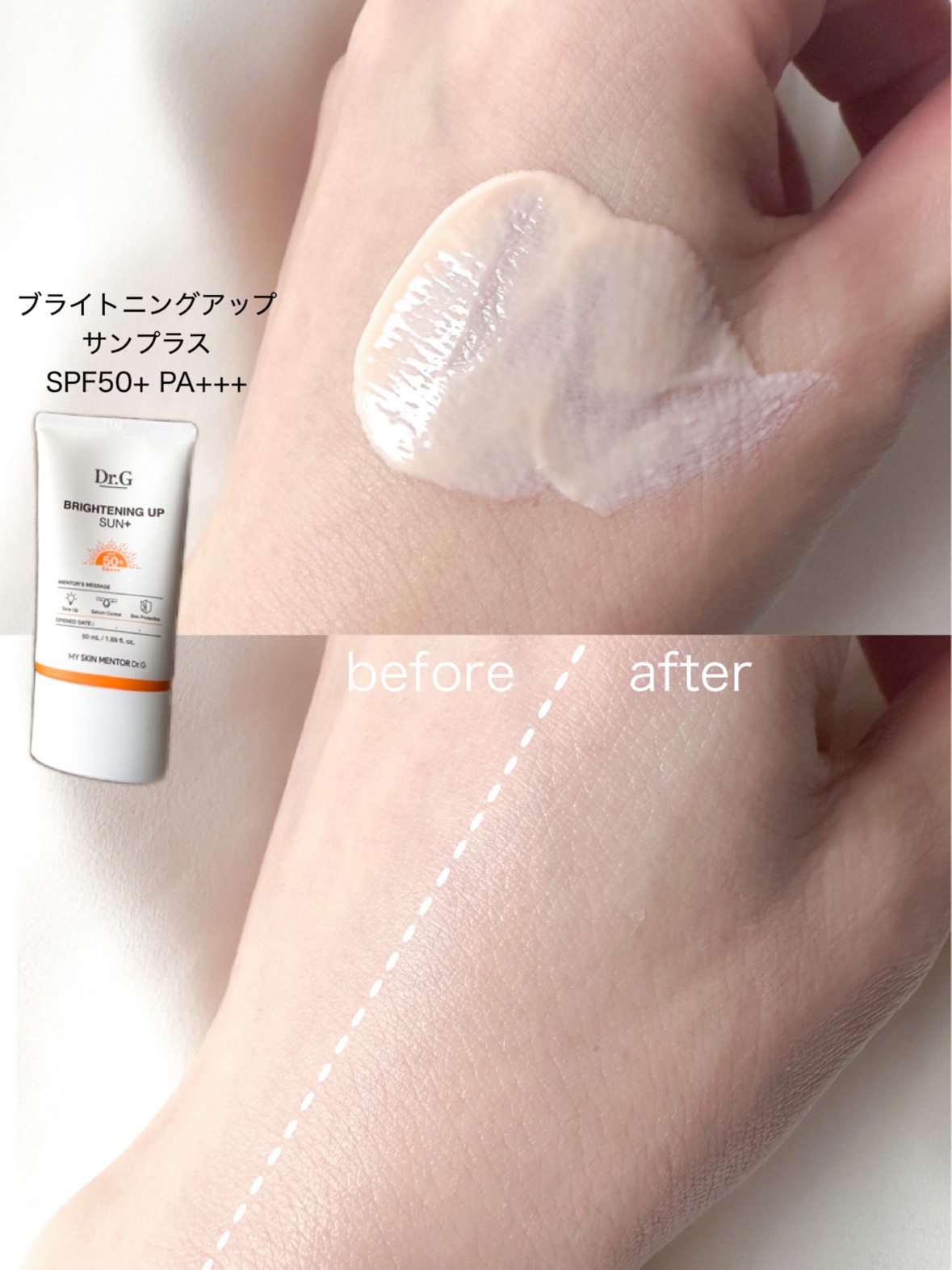 LDKのBestbuy賞を受賞したこともある日焼け止め&下地クリーム☀Dr.GブライトニングアップサンプラスSPF50+・PA+++ピーチカラーでほんのりトーンアップしてくれてお肌を自然に綺麗に見せてくれます✨スルスルと伸びが良くサラッとべた...