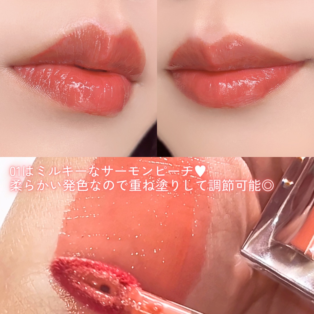 色味ももちろん可愛さ100ですが塗り重ねれば塗り重ねるほどツヤツヤする仕上がりで、ムチッと上品な唇に☺️ Dear.A ハイドロデュイティント 01.ピーチアンバー ¥1,600 Qoo10にてお求め頂けます🍬🫶🏼