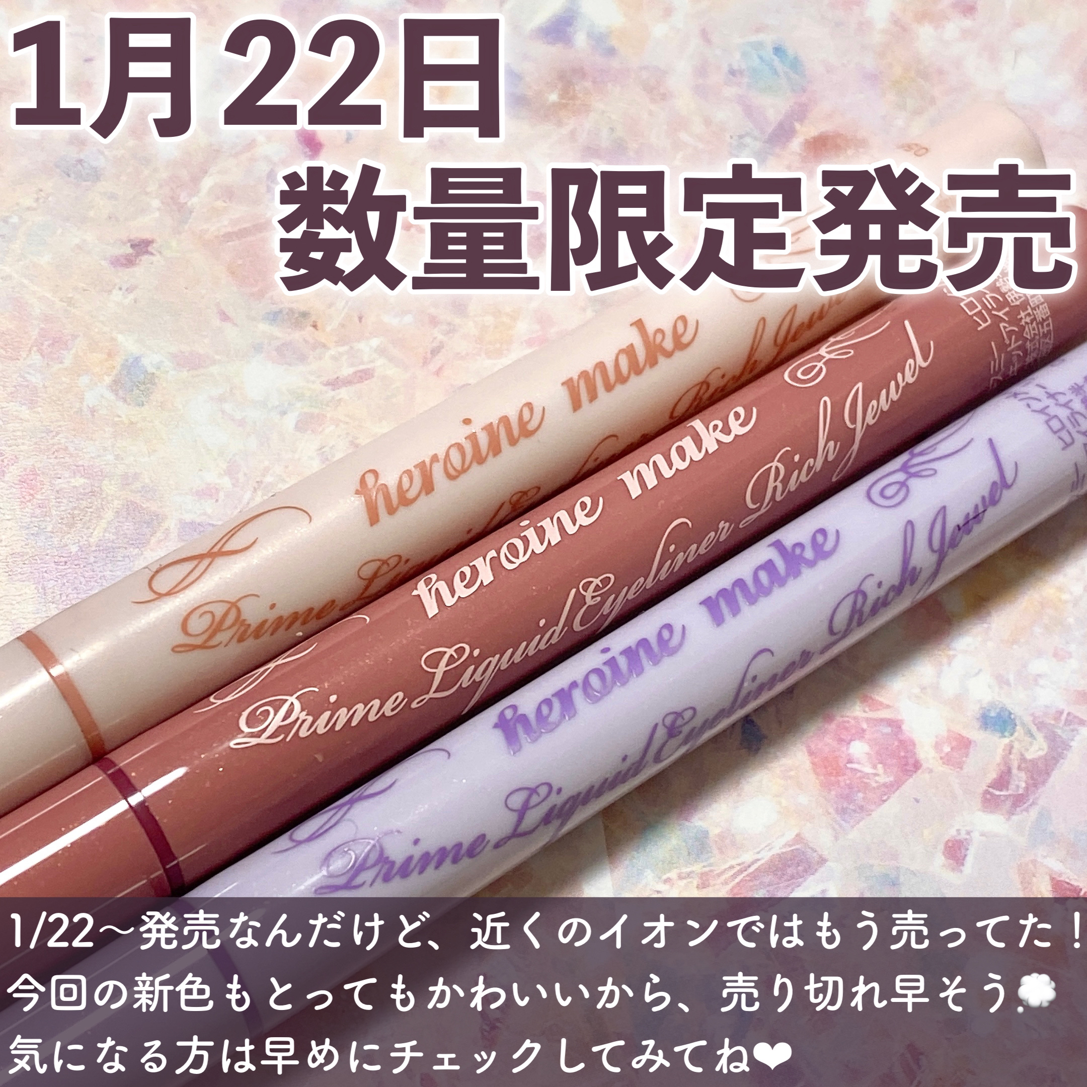 超!輝きラメライナー🪄 ヒロインメイク ⟡プライムリキッドアイライナー リッチジュエル この2色と、09フローズンピンクの計3色並んだ売り場でいつも売り切れてるのが11だった! 今日出会えたのでお迎え🛒 09フローズンピンクはひんやりピンクでめっちゃ可愛いけど我慢した😵💫