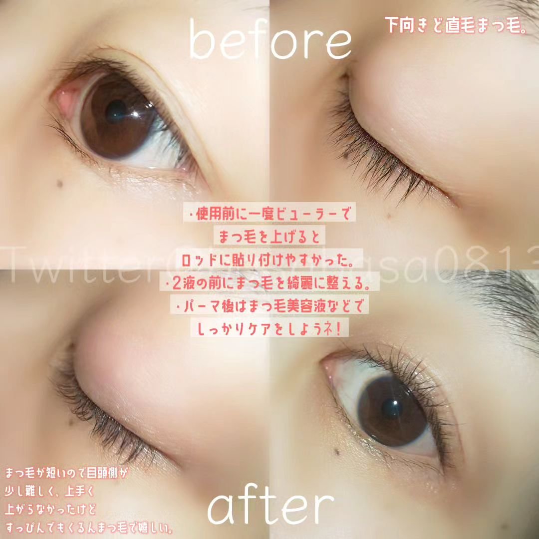 自宅でまつ毛パーマが出来るよ✨️ 必要な物が全て揃っていて、日本語の説明書付き。 CカールとLカールの選べるロッドにサイズも豊富🫶 翌日もしっかりカールしていて嬉しいです🙌