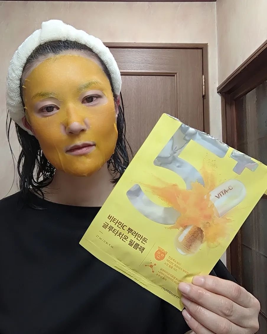 ビタミンCをふりかけた黄色いシートに高濃縮グルタチオンCアンプルをたっぷり入れ込み、明るく透明な肌に導く高機能性美白シートマスク 黄色いパックで液がひたひたで密着力も良かった😆💛 外したあともワントーン肌が明るくなってた🫶