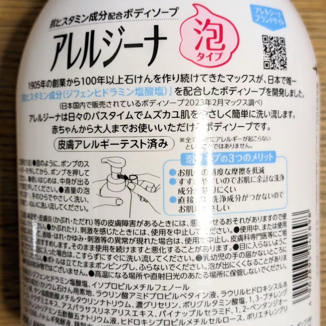 商品詳細情報マックス アレルジーナ 抗ヒスタミン成分配合 泡ボディソープ