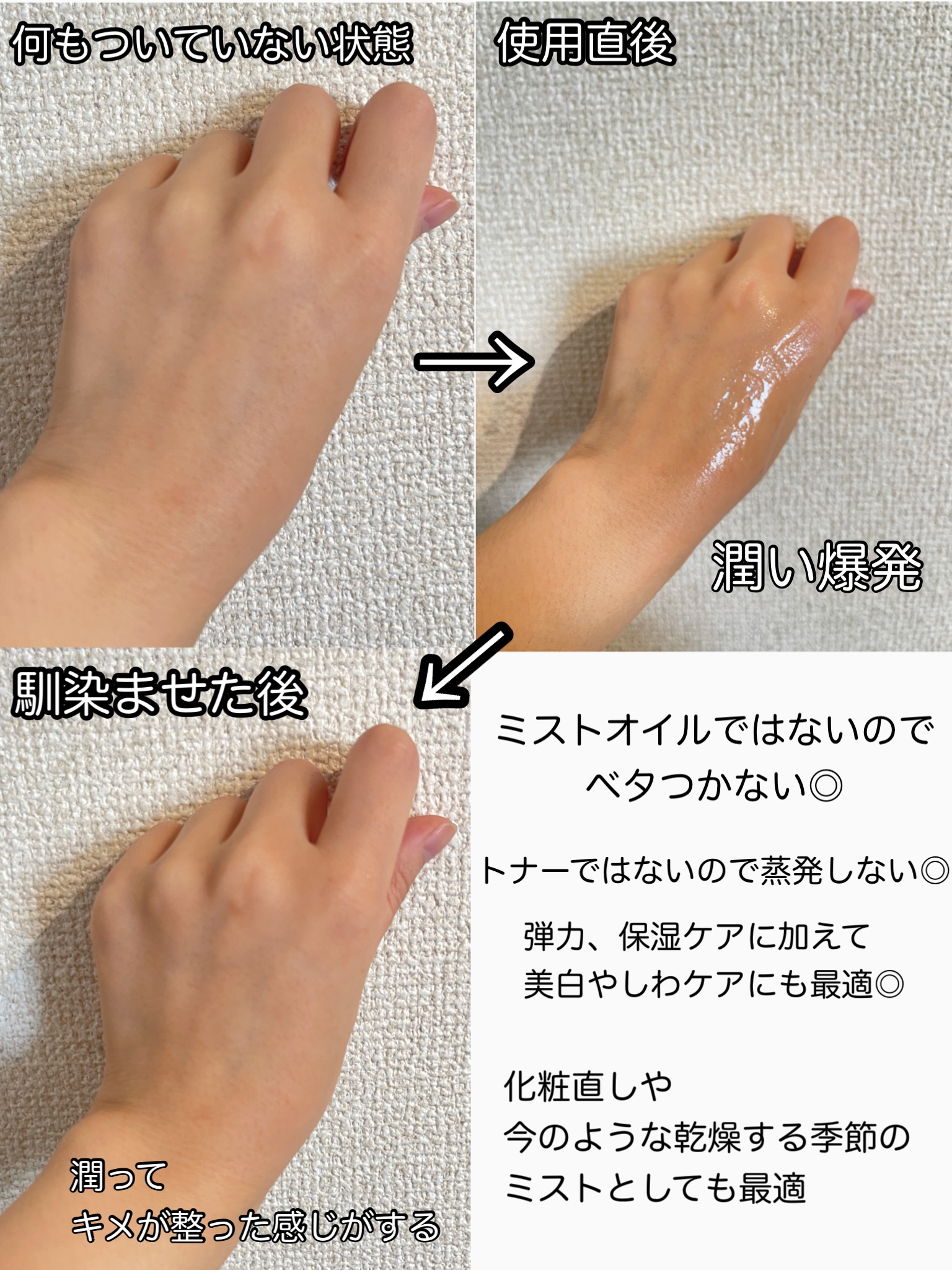 1滴で角層細胞レベルにアプローチしてくれる導入美容液。 化粧水などの浸透率がかなりアップすると言われていて、見ただけで浸透率を感じられます。 肌馴染みもよくかなり軽いテクスチャーです。 お肌の水分量などはで普段使っているコスメデコルテやイプサの化粧水などで上がっていたのですが、さらにハリ感や目の周りの乾燥なども改善されたので2024年はこの商品を使っていきたいと思います。