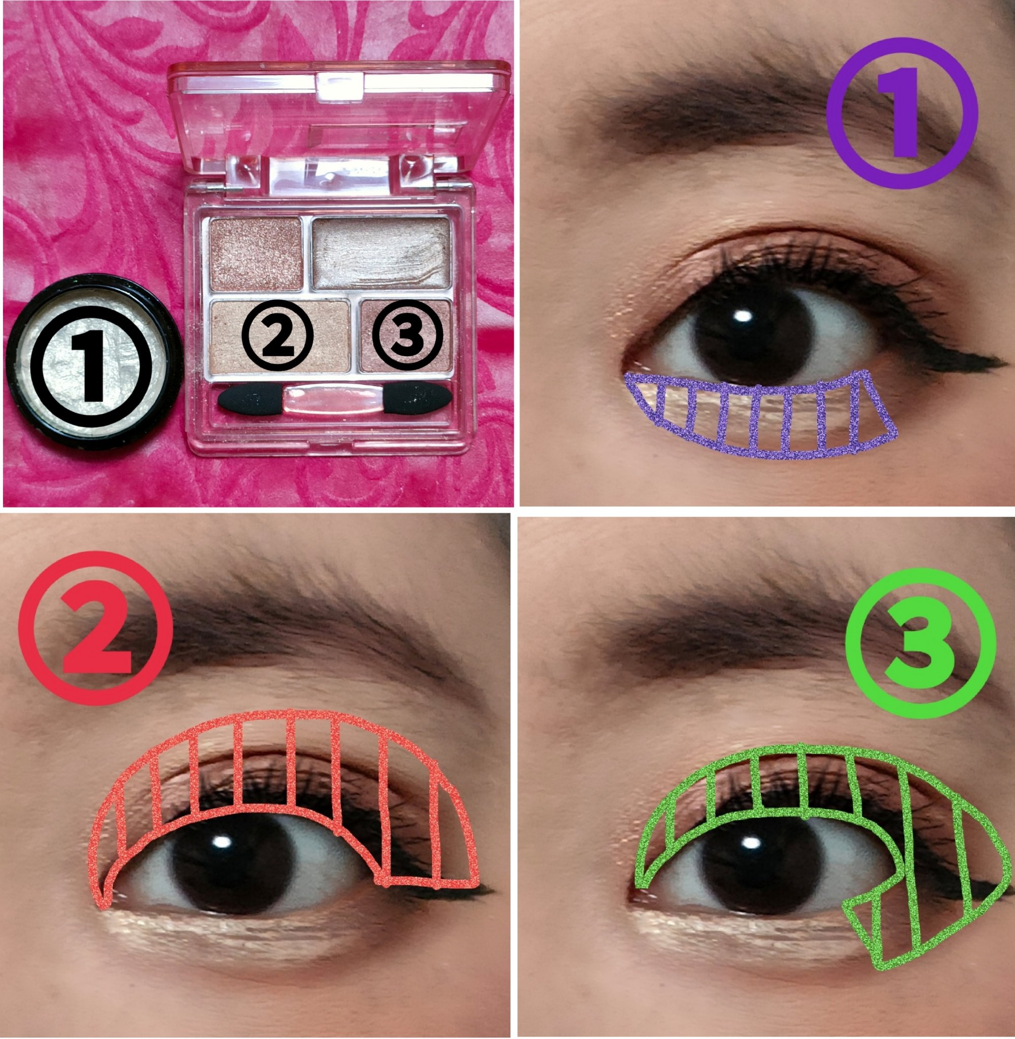 アイシャドウパレットは、URGLAM UR GLAMBLOOMING EYE COLOR PALETTE 02を、使用しました。 マスカラは、MAYBELLINE NEW YORK コロッサルボリュームエクスプレスを、まつ毛全体にまんべんなく塗ります。 リップは、wet 'n' wild MegaLast Lip Colorを、唇全体にまんべんなく塗ります。