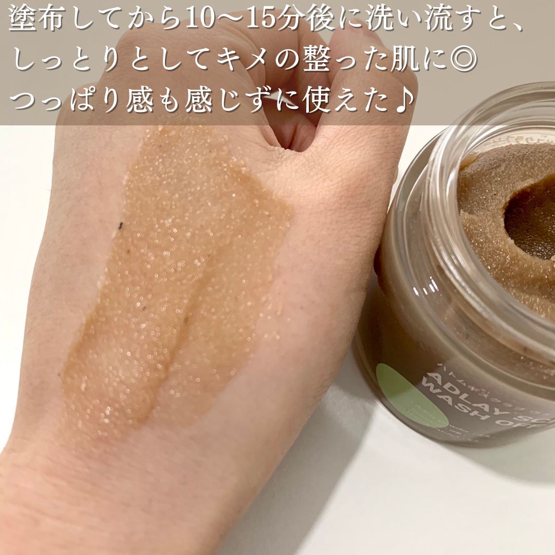 ハトムギ ※1スクラブウォッシュオフパックは、ハトムギ種子(保湿)、砂糖、ハチミツの組み合わせで肌の角質をしっとり柔らかくケアができるスクラブ❤️ 顔だけでなく、角質が気になる唇、肘、膝、かかとなどあらゆる部位にマルチに使えます✨ 優しいジャムテクスチャーで、ザラザラ感も全然痛くなかったです☺️ 洗い流すと肌がしっとりもちもち肌に😍
