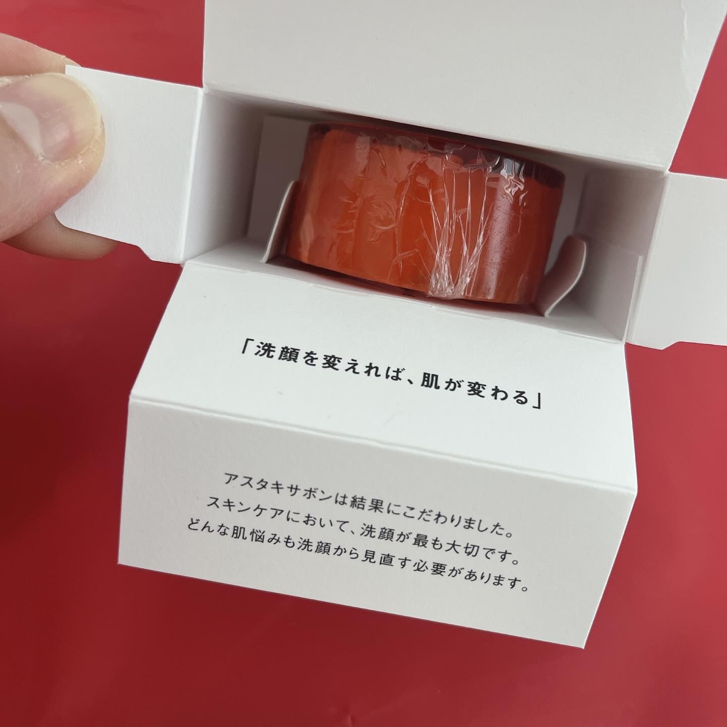 美しい、ルビーのように輝くこちらを見かけてからどんな石鹸なんだろう? ふうわりとした上品な香り。今までにない、ねっとりしたような細やかなメレンゲのような泡立ち! 石鹸に含まれる美容成分はアスタキサンチンをはじめ、CICA(ツボクサエキス) 植物エキス ハチミツ ハトムギエキス 海塩が、配合されており