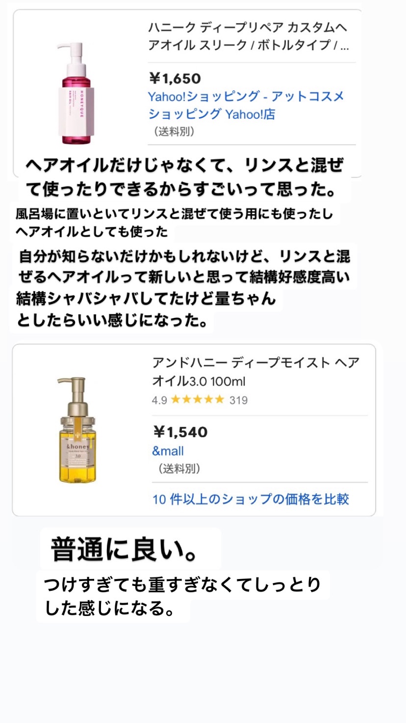 オイルトリートメント#EXヘアオイルに星3個の評価をつけました&honeyMeltyモイストリペアヘアオイル3.0に星4個の評価をつけましたディープモイストヘアオイル3.0に星4個の評価をつけましたスーパーバウンシーヘアオイルに星4個の評価を...