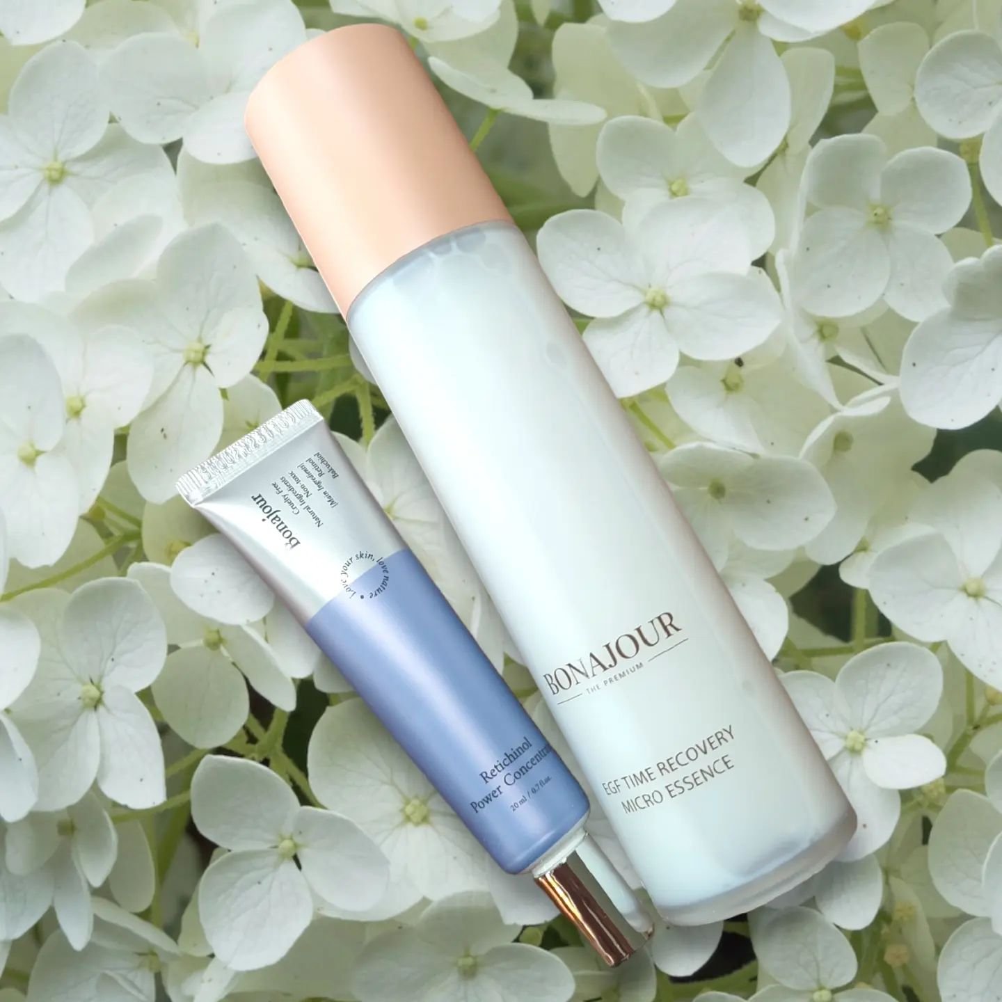 --------------------BONAJOUREGFタイムリカバリーエッセンス--------------------高濃縮・高栄養・高機能な化粧水⸝⸝꙳化粧水というより軽い乳液のようなテクスチャー乳白色でほんのりとろみがありなめら...