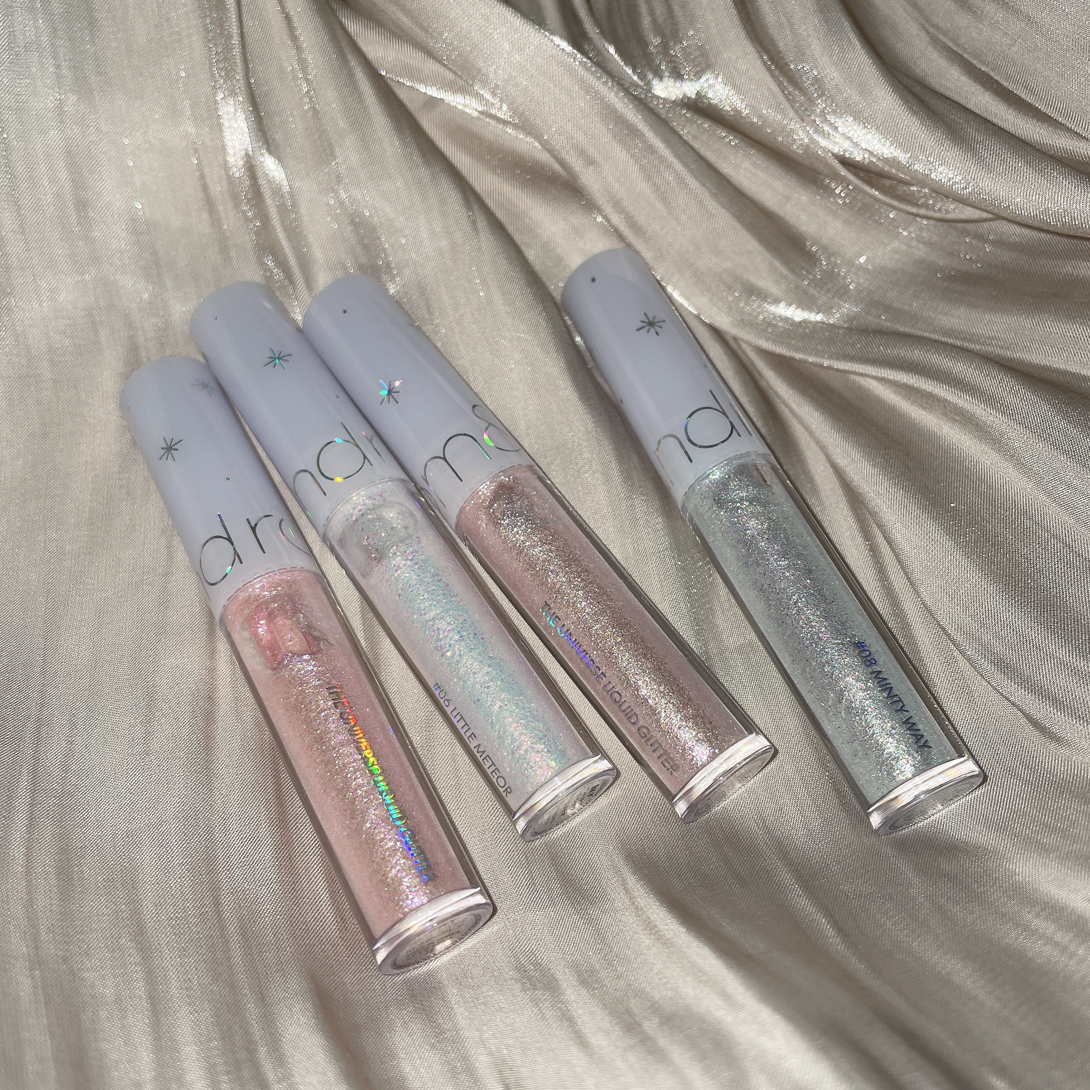 - ココロ踊るプリズムアイ ①様々な粒子を黄金比率で構成 ②長時間輝きを維持 ③使いやすい弾力のあるチップ <05~08> rom&ndが「ジューシーラスティングティント」に次いで日本へ展開したアイテムのひとつである「リキッドグリッターシャドウ」。 発売以来、160万本(*1)を超える実績を持つ定番人気商品ですが、このたび新たに4色を発売します。 既存カラーと比較すると、ラメはより繊細に、色味も淡めのニュアンスカラーになりました。 冬の空にかかるオーロラのように、多彩な表情を目もとにプラスします。 既存カラーと合わせて全8色、その日のメイクに合わせてお選びいただけます。 *1…2020年4月~2023年11月の出荷本数(当社データより)
