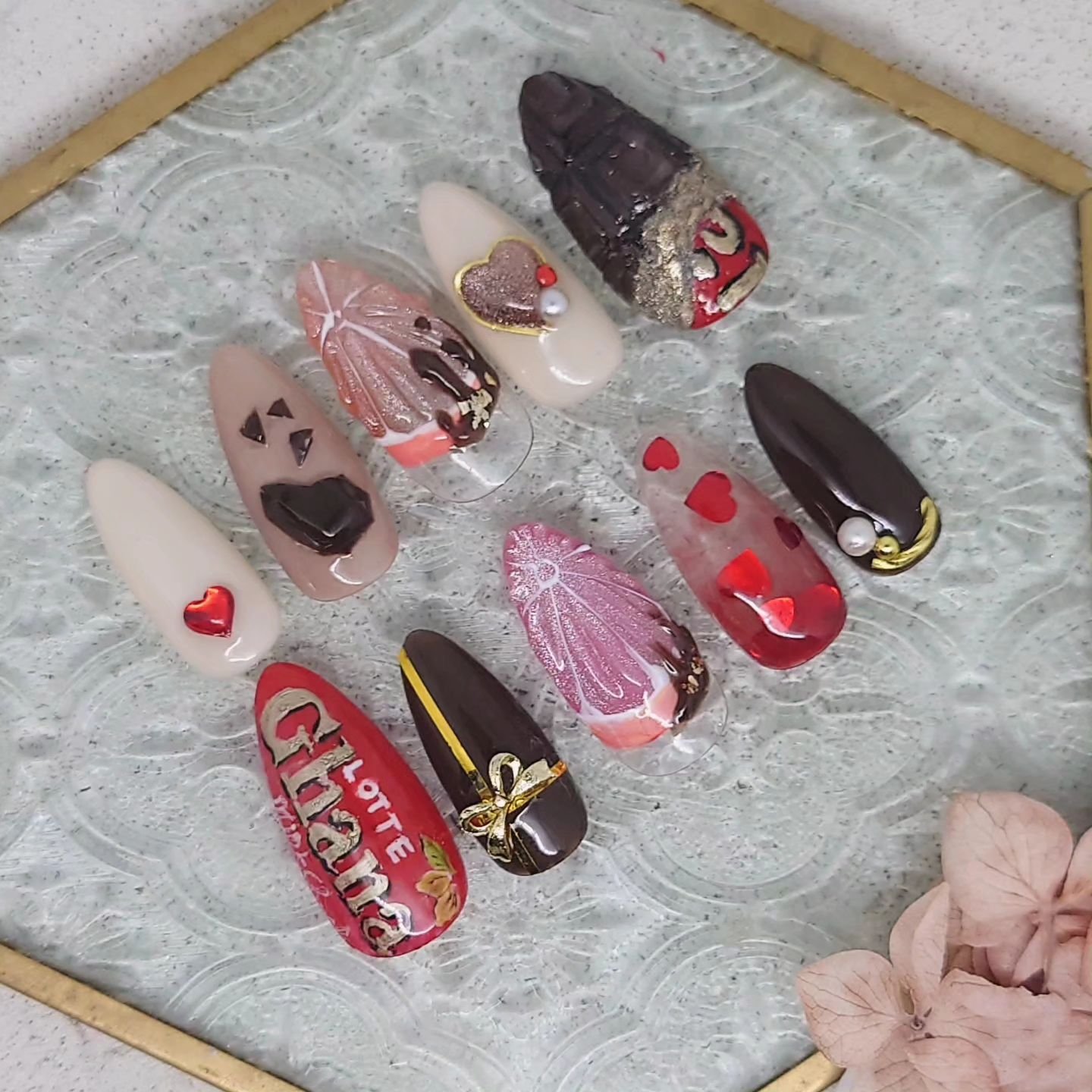 バレンタインネイル❤️ オランジェットショコラ作りたかったのです🤤板チョコも添えて甘い香りがしそうなチップ達。#セルフネイル部#ジェルネイル#バレンタインネイル2024#板チョコ#オランジェットショコラ#マグネットジェル...