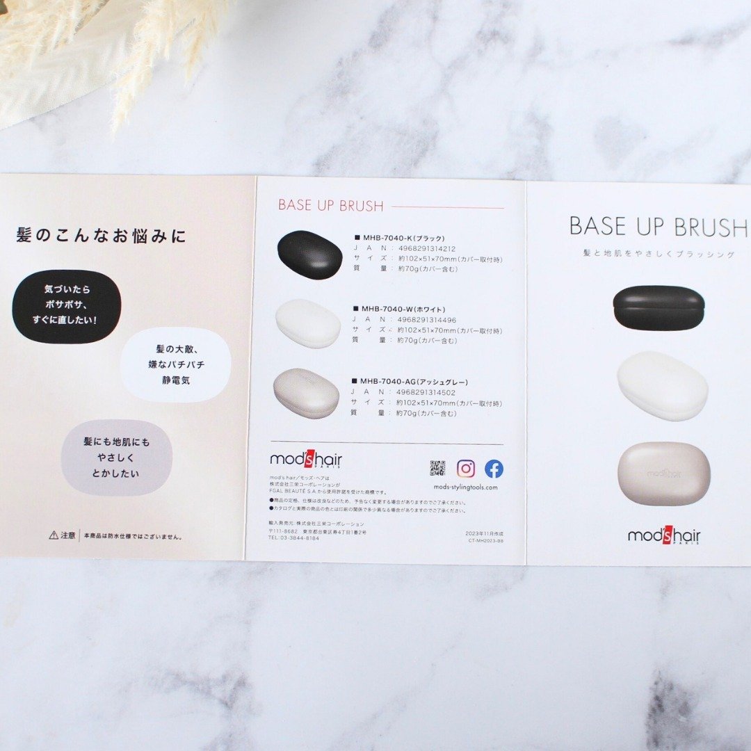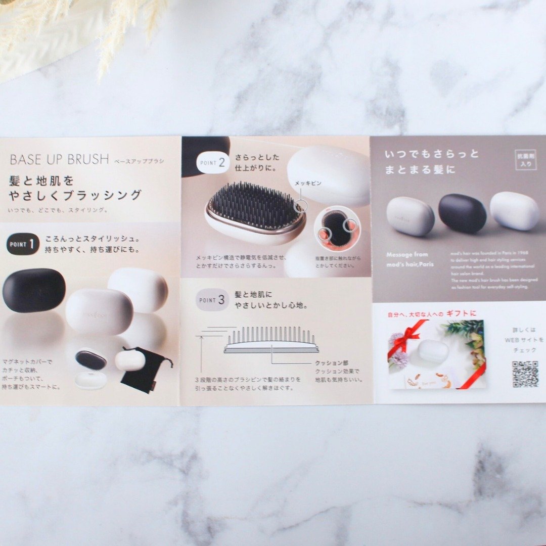 - 髪と地肌にやさしい使い心地、持ち運びにも便利なベースアップブラシ。 いつでも、どこでも、スタイリング。 POINT1:ころんっとスタイリッシュなデザイン ころんっとしたフォルムで、かわいいデザイン。 丸みのある、持ちやすい設計にしました。 POINT2:さらっとした仕上がりに メッキピン構造で、静電気を低減させ、とかすだけでさらさら髪に仕上がります。 POINT3:髪と地肌にやさしいとかし心地 3段階の高さのブラシピンで髪の絡まりを引っ張ることなく優しく解きほぐします。 クッション部は、クッション効果で地肌も気持よくとかせます。 POINT4:持ち運びに便利なカバー マグネットカバーでカチッと収納、ポーチもついて持ち運びもスマートに。 その他の特長 ・持ち運びや収納に便利なポーチ付き ・抗菌剤入り いつでも、どこでもさらっとまとまる髪に仕上がります。