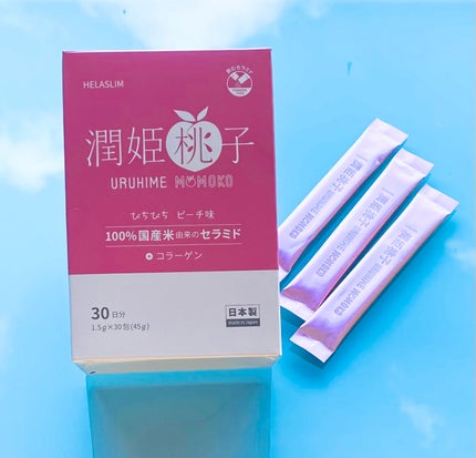 100%国産米由来セラミド配合のパウダーサプリで美容サポート!!.✿潤姫桃子.100%国産米由来のグルコシルセラミド、コラーゲン、4種のビタミンが配合されているよ✨.ピッと切ってササッと飲めるスティックタイプ♪やさしい甘みのピーチ味で美味しい...