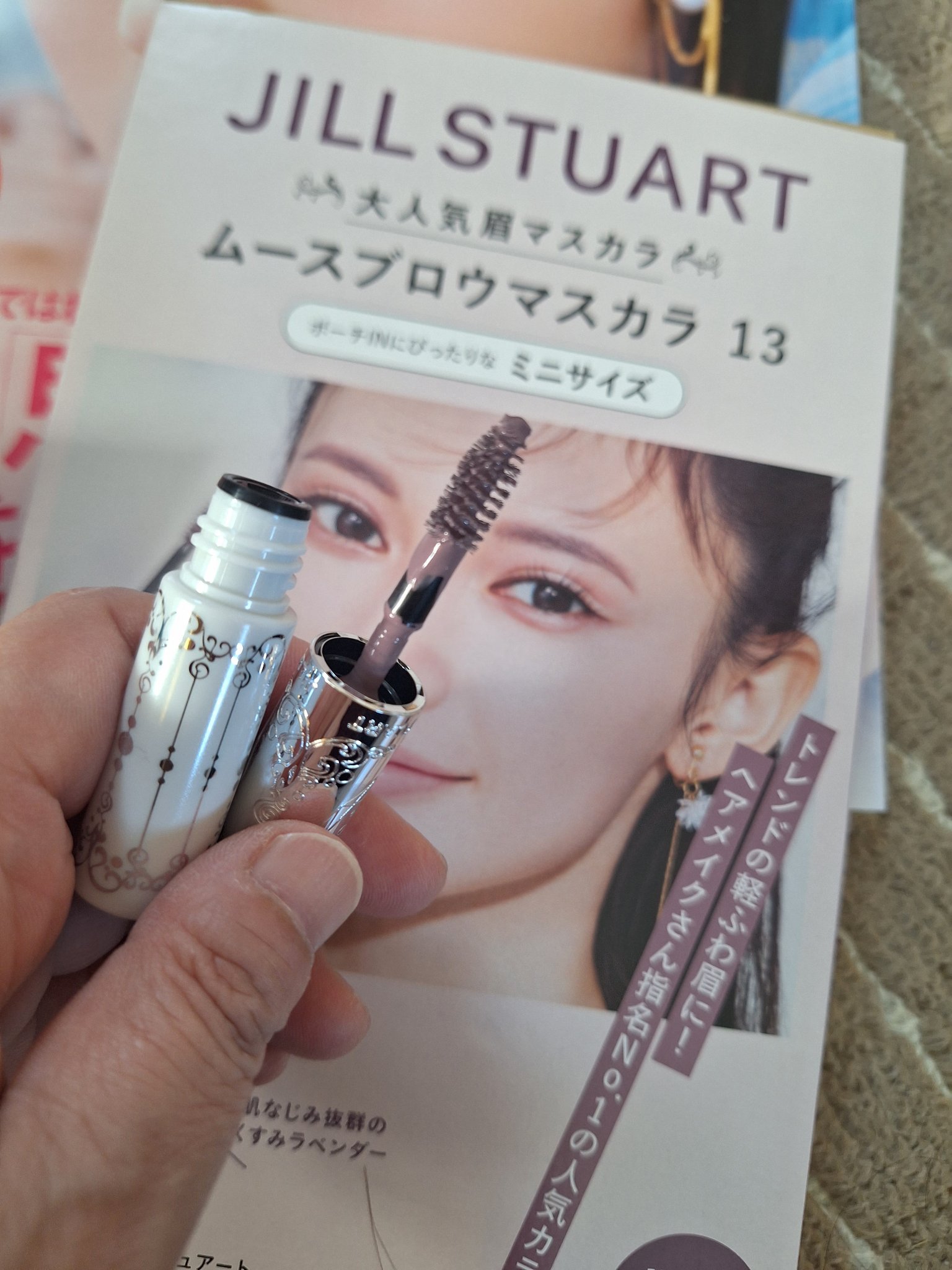 ヴォーチェにはジルスチュアートのミニサイズ眉マスカラが付いてるしマキアにはリリミュウの現品リップが付録です。 リリミュウのリップは現品サイズになってるけど開けてん?ってなった私が持ってるリップと比べてみたけどやっぱり少ない😂 画像左側が付録の04シナモンナッツです。