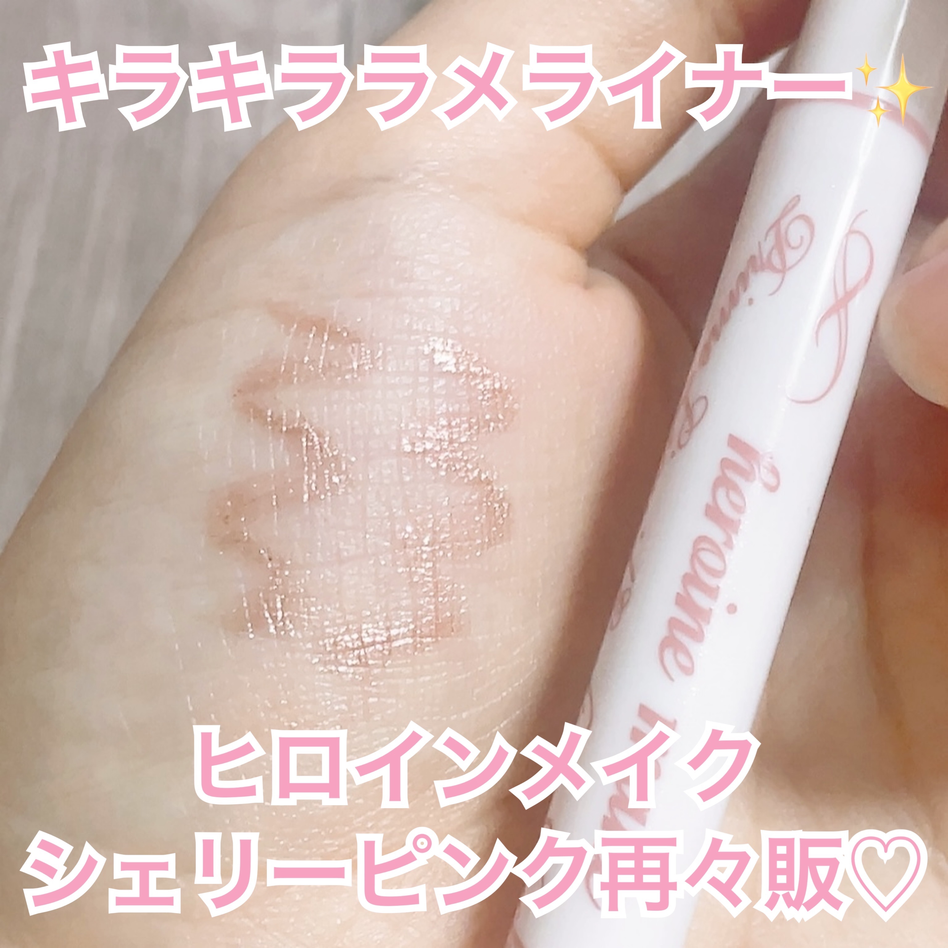 全て大粒グリッターパール入りで煌めきが半端ない😊 ラメやキラキラ好きにはたまりません! シェリーピンクは肌馴染みのいいベージュ寄りのピンクで、さりげなく煌めかせたい方に 筆も細くてスルスル描きやすく、根元をうまく使えば太めにも引けるので便利✨