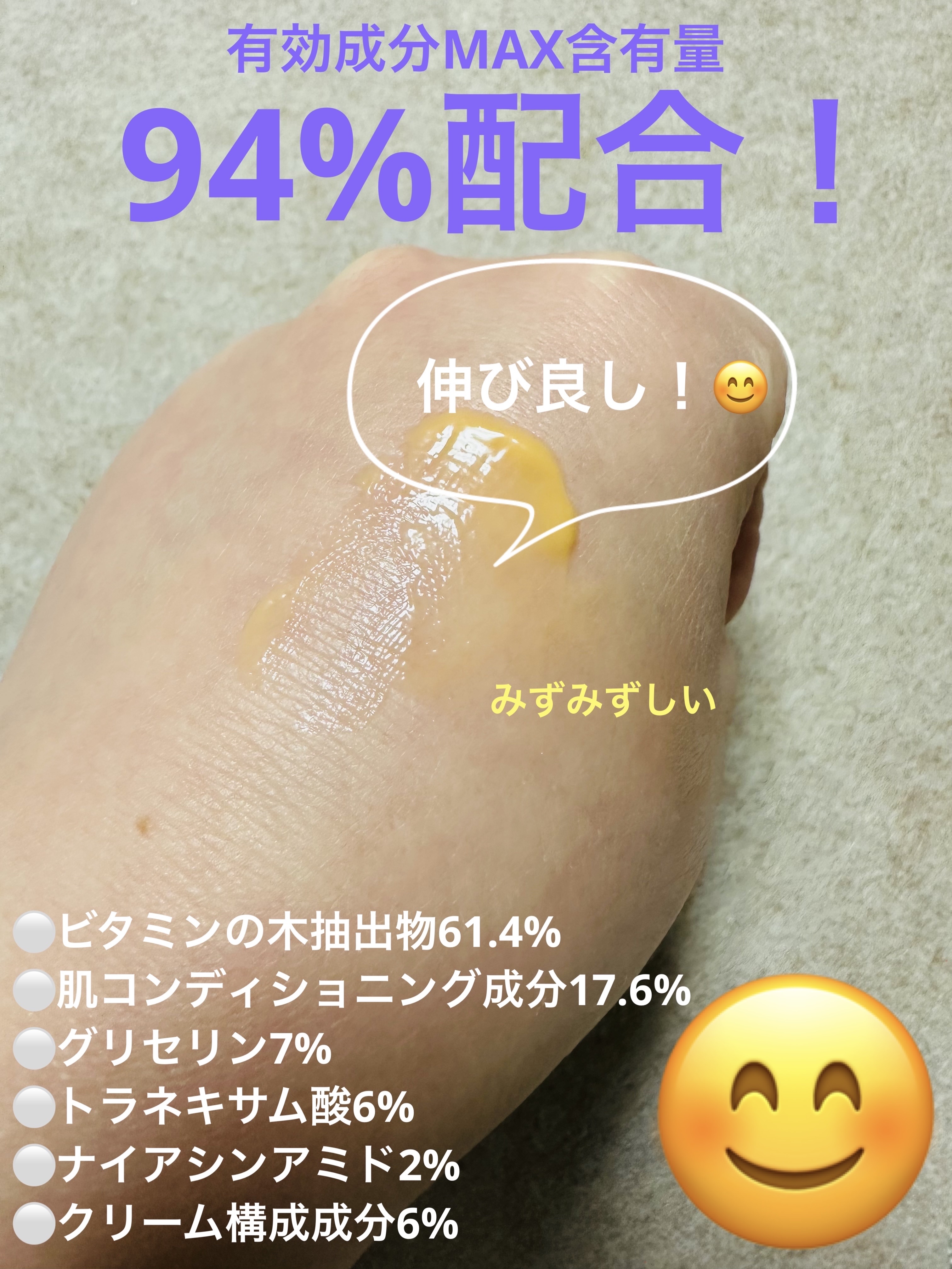 かなり明るいオレンジクリーム🍊で、ほんのり柑橘系の香りで伸びが良くベタつきがありません! みずみずしいテクスチャーで敏感肌の私でもピリピリすることなく使用できるので、おすすめです! 30ml